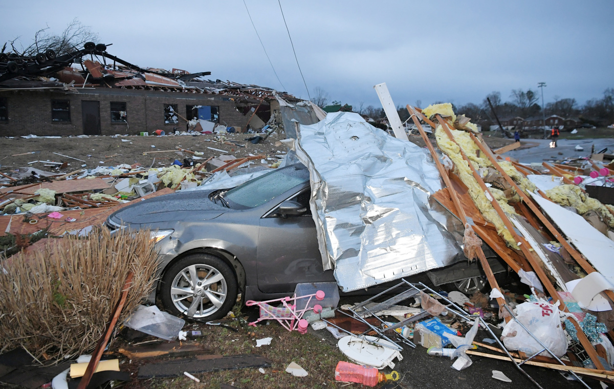 Images also showed rubble and debris scattered across the parking lot of the Donelson Christian Academy in Nashville.