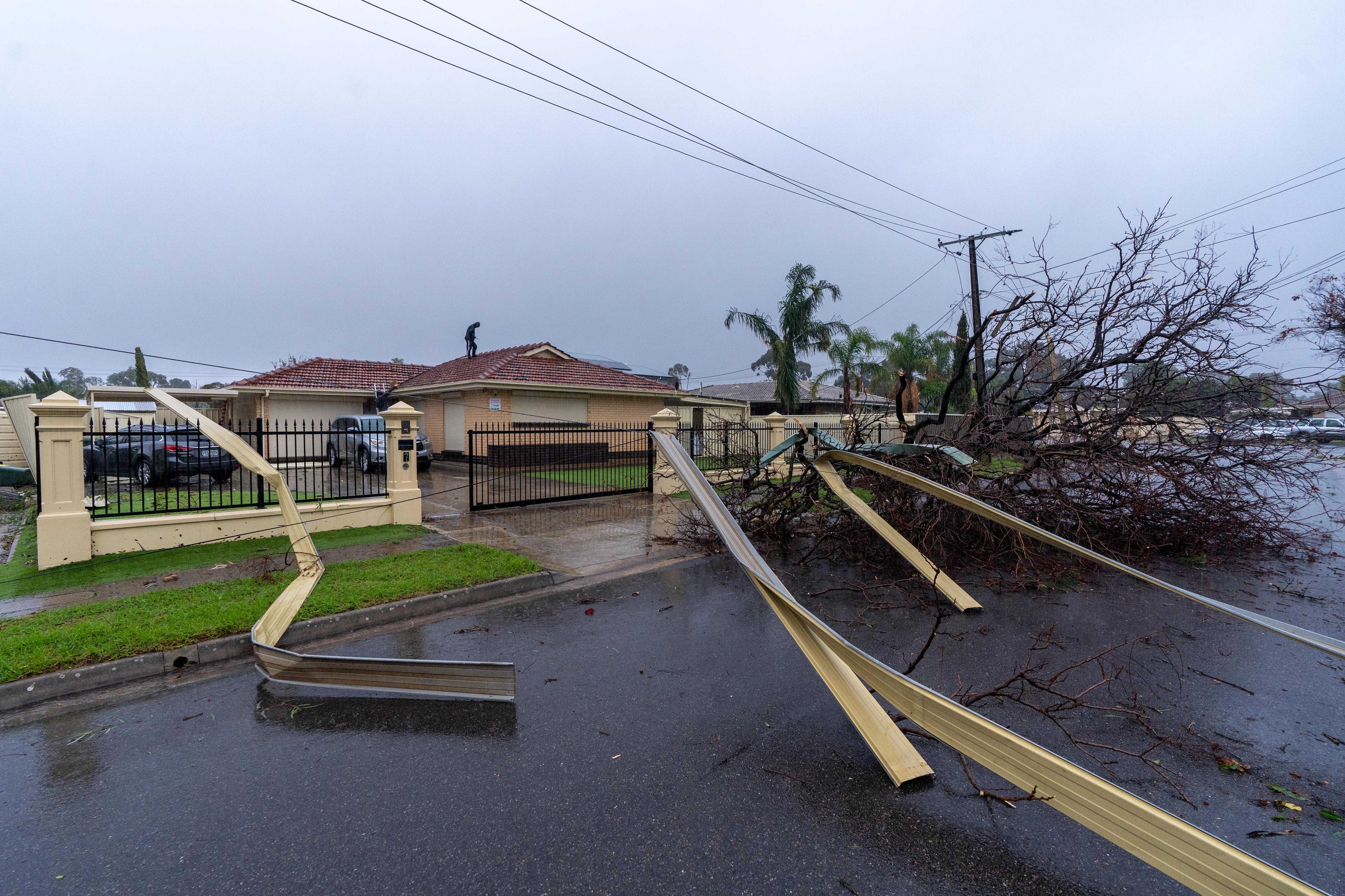 Adelaide's north has been hit by a mini tornado causing flooding and damage to homes and roads — and a severe weather warning for damaging winds and more heavy rain remains in place for most of the state.