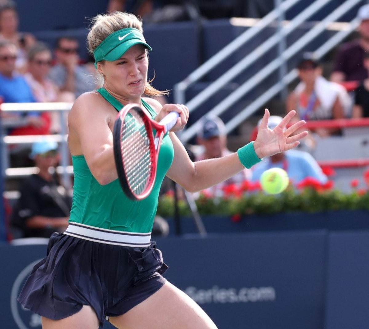 (Reuters) - The vocal support of the home crowd was not enough to carry Canadian Eugenie Bouchard into the second round of the Rogers Cup in Montreal on Tuesday as she fell 6-2 6-4 to Belgian Elise Mertens.