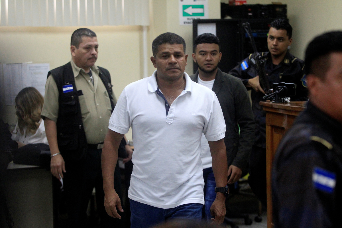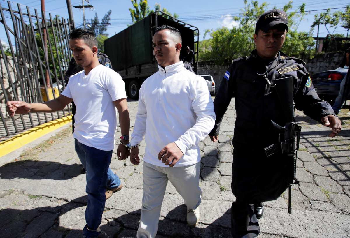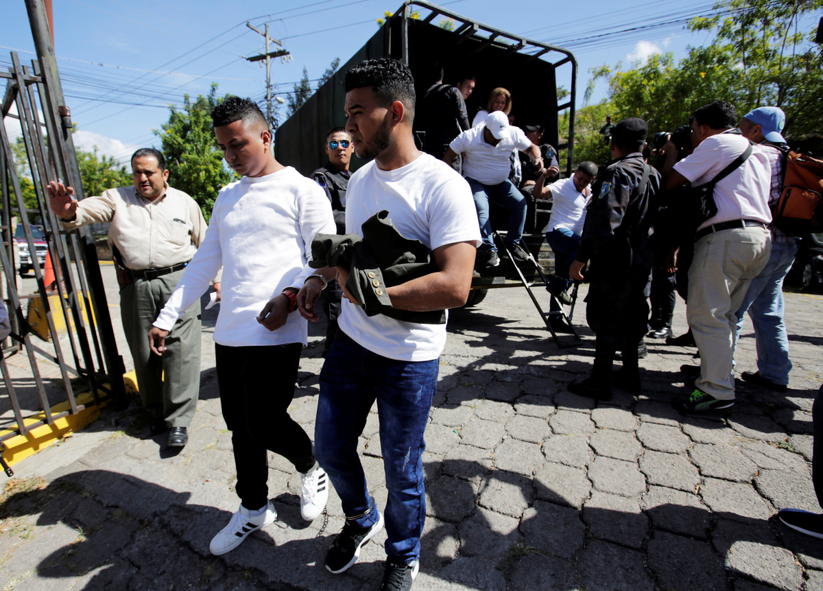 The detainees charged with the murder of indigenous environmental activist Berta Caceres arrive to court for their trial, in Tegucigalpa, Honduras November 29, 2018. REUTERS/Jorge Cabrera