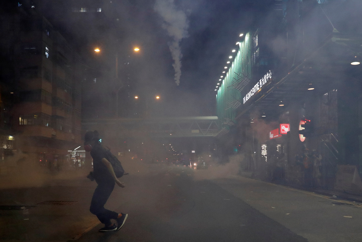 Hundreds attended a demonstration in the residential area of Sham Shui Po, where police arrived and quickly used tear gas after protesters pointed lasers at the police station.