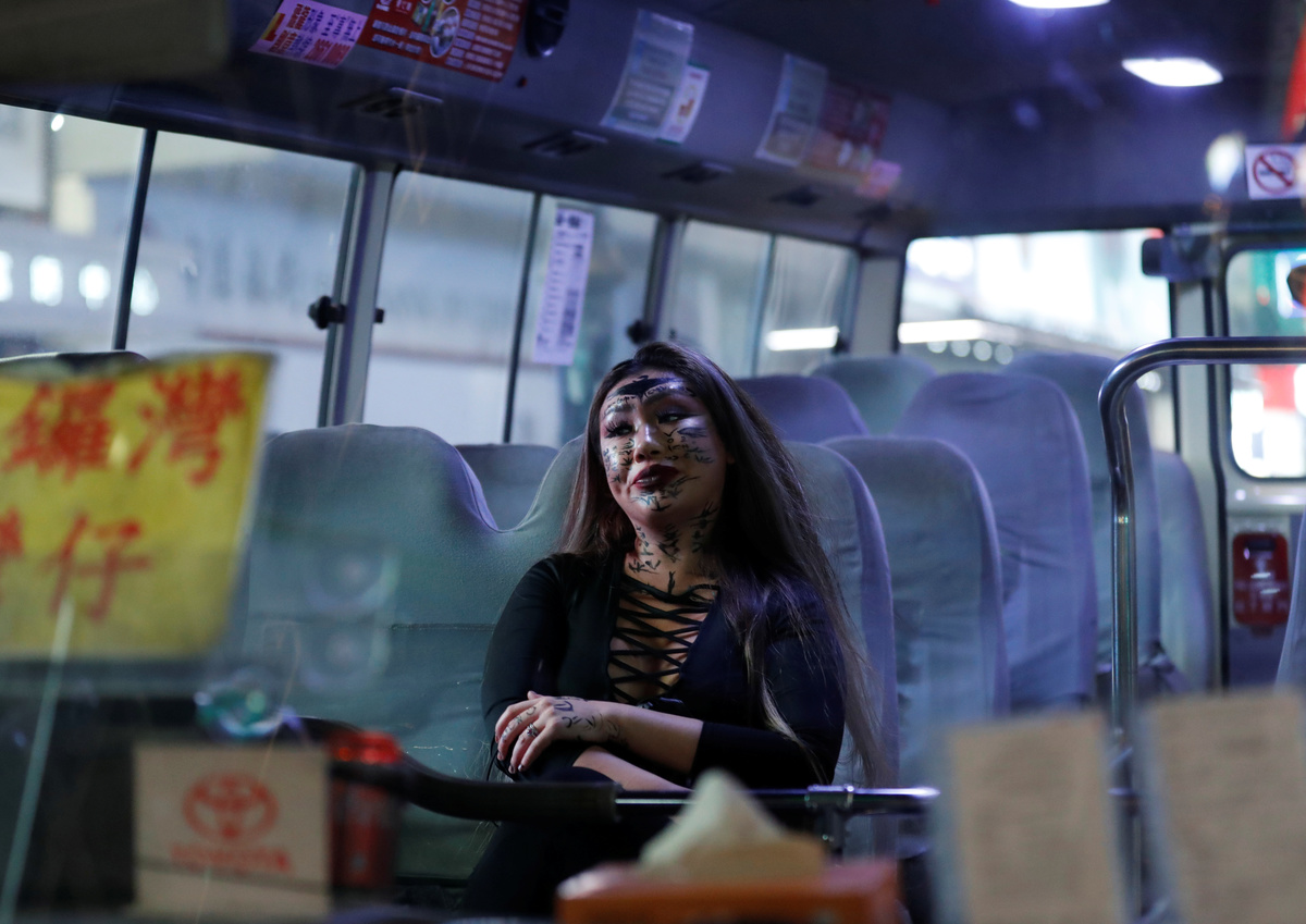 Black-clad protesters, wearing banned face masks, mingled with fancy-dress Halloween revellers in the narrow, sloping streets of Lan Kwai Fong on Thursday, the first time the bar district had been targeted.