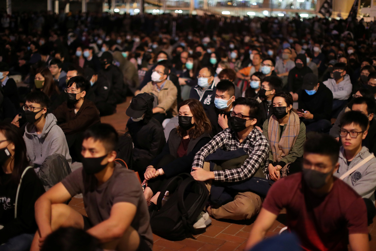 HONG KONG (Reuters) - More than 1,000 protesters, many in surgical masks and balaclavas, filled a harbourside plaza near Hong Kong's financial district late on Monday to demand full democracy and an independent inquiry into alleged police brutality.