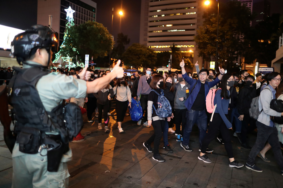 Protesters plan to gather in five malls on Christmas Eve and will count down to Christmas near the harbour front in the bustling Tsim Sha Tsui district, social media posts say. More protests are planned for Christmas Day on Wednesday.