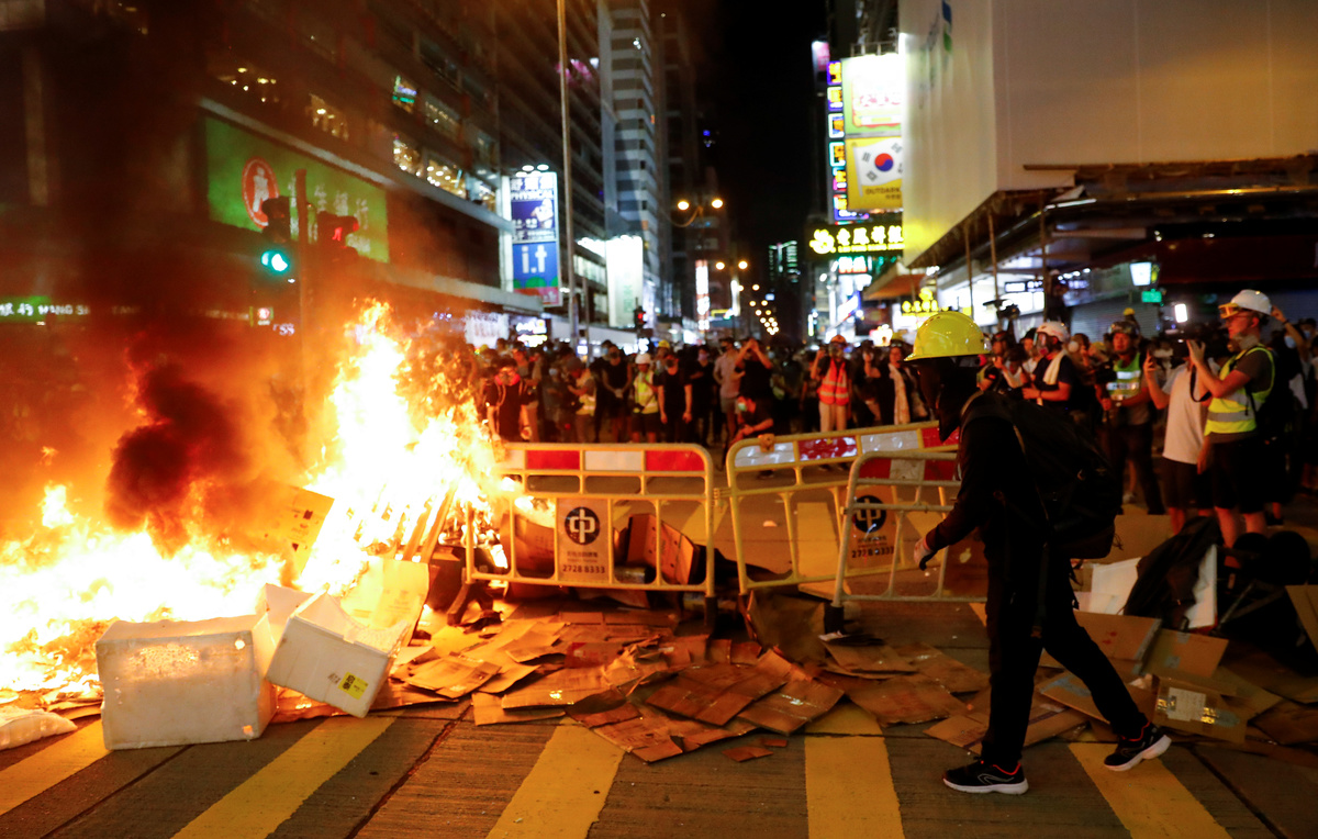 "No China" was daubed over walls along the key north-south artery of Nathan Road.