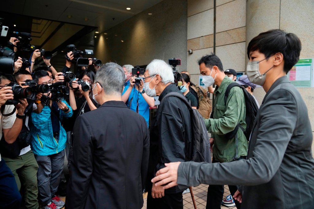 They appeared at Hong Kong’s West Kowloon court Tuesday. Zen and the five others were trustees of the now-defunct 612 Humanitarian Relief Fund, which was set up in 2019 to assist protesters who required financial assistance with legal or medical costs.