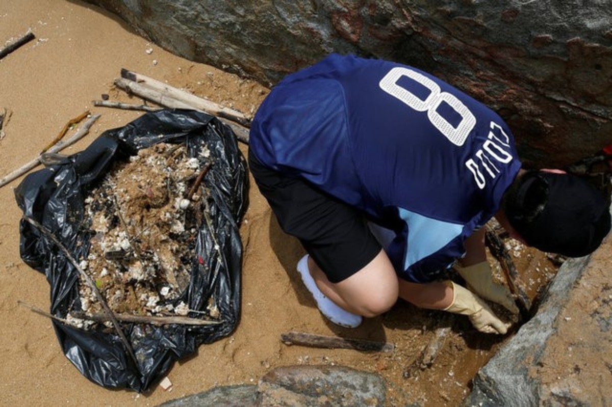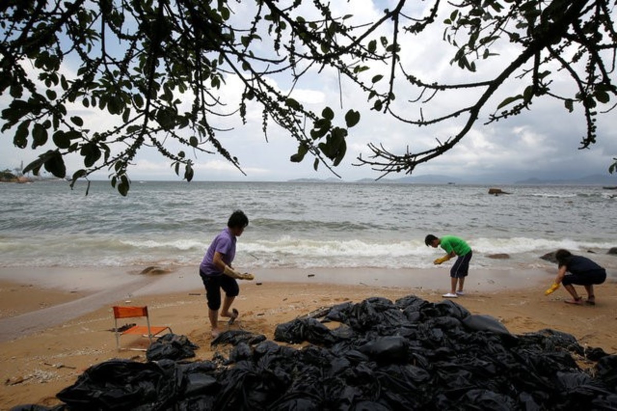 There was a similar scene on nearby Lamma Island, where authorities and residents have also cleaned up tonnes of oil.