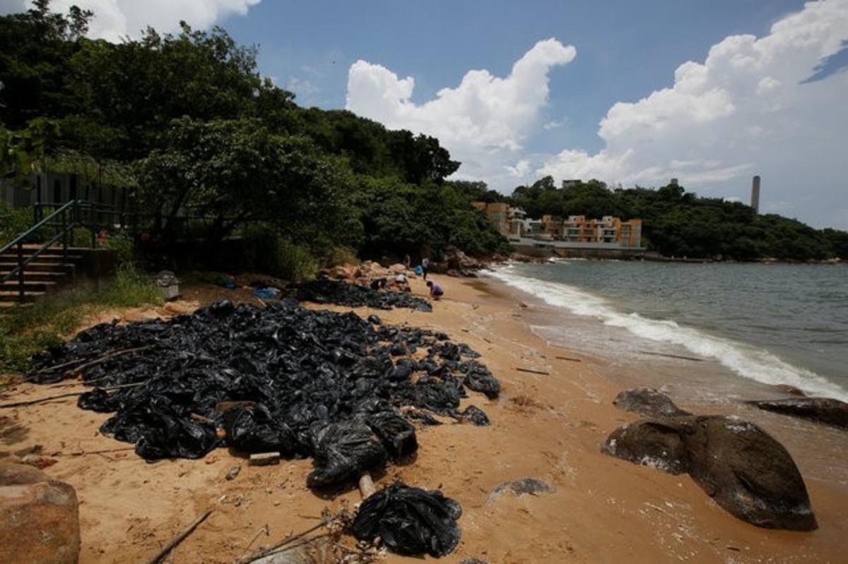 The government has closed 13 beaches since Sunday, a day after it said it had been informed of the spill by mainland authorities. The Marine Department confirmed the collision happened on Thursday.