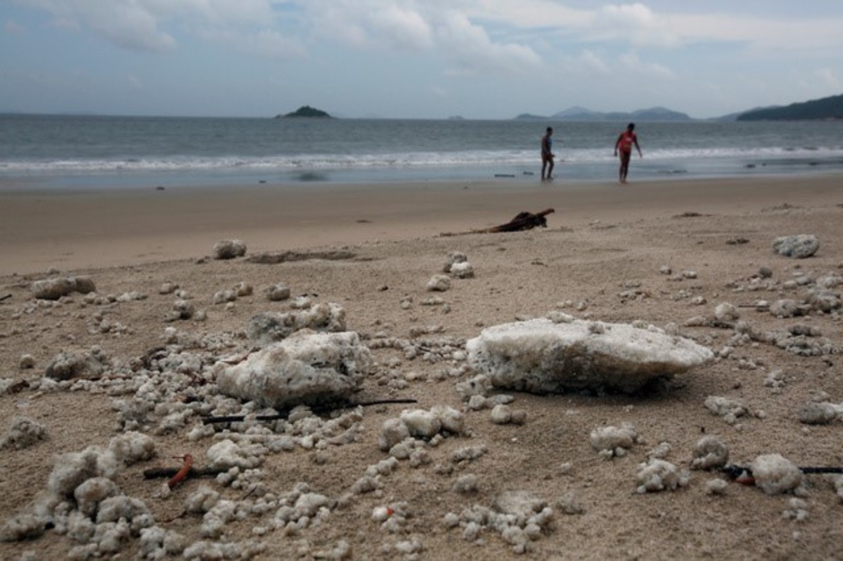 On Pui O beach on Lantau Island, large stinking clumps of congealed palm oil dotted the shoreline, and a rock formation at one end that children love to climb was coated in the slippery substance.