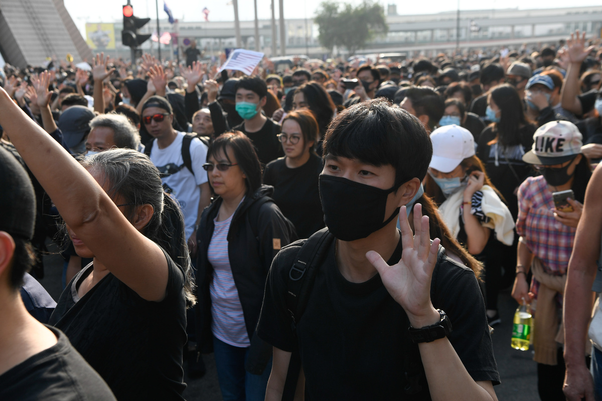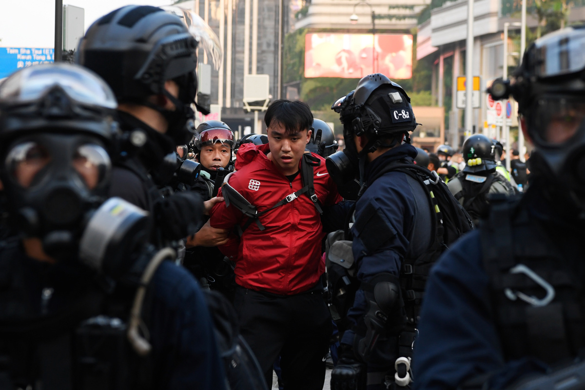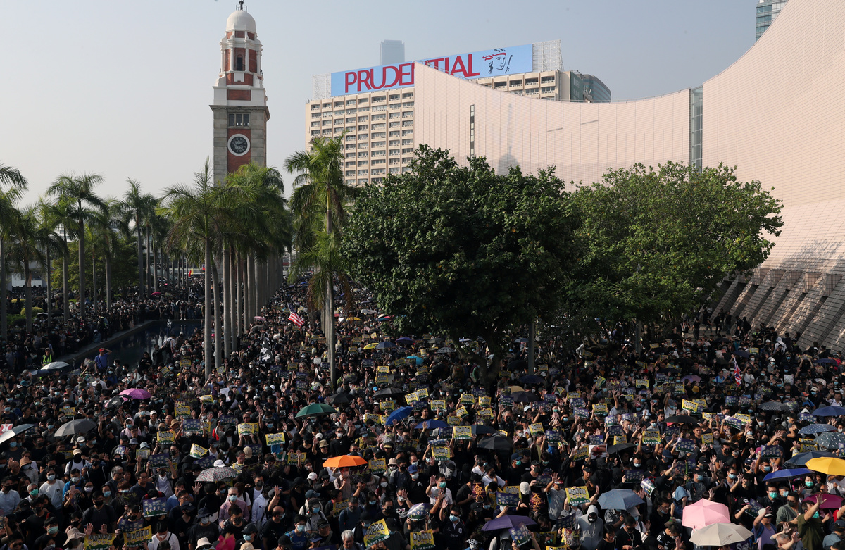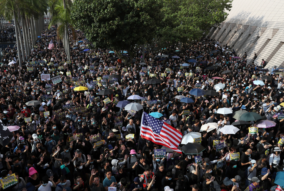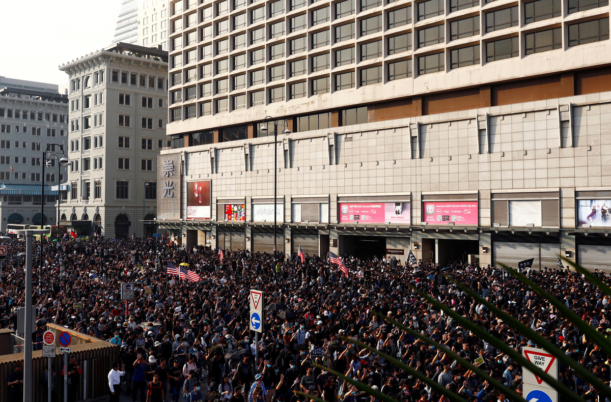 A day earlier police again fired tear gas to disperse thousands of protesters as they marched past the city's Kowloon waterfront, after first going to the U.S. consulate on Hong Kong island to show gratitude for Washington's support.