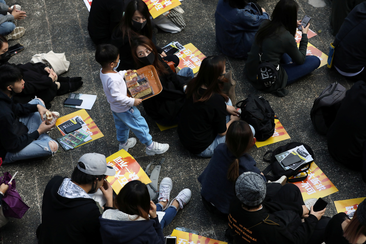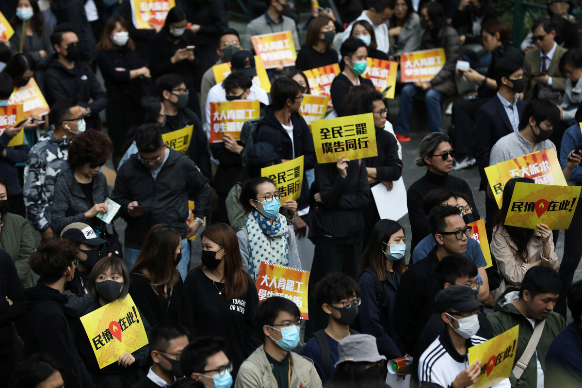 HONG KONG (Reuters) - Hundreds of office workers in Hong Kong's business district gathered on Monday for the first in a week of lunchtime protests backing the pro-democracy movement after its resounding victory in district polls last month in the Chinese-ruled city.
