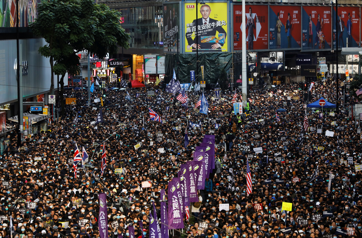 Protesters attend a Human Rights Day march, organised by the Civil Human Right Front, in Hong Kong, China December 8, 2019. REUTERS/Danish Siddiqui