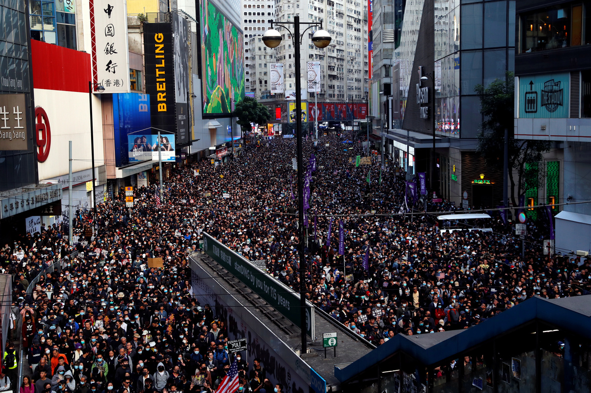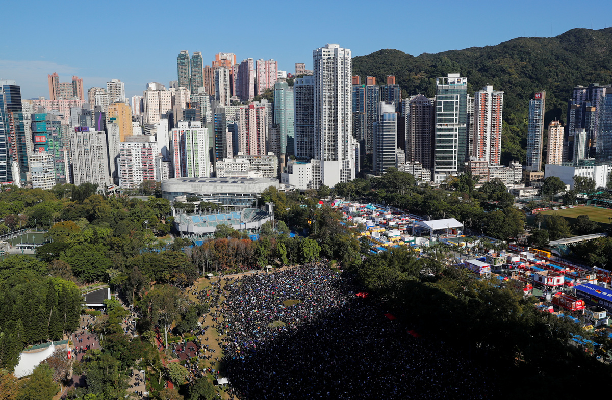 HONG KONG (Reuters) - Vast crowds of black-clad demonstrators thronged Hong Kong on Sunday in the largest anti-government protests since local elections last month that boosted the pro-democracy movement seeking to curb controls by China.