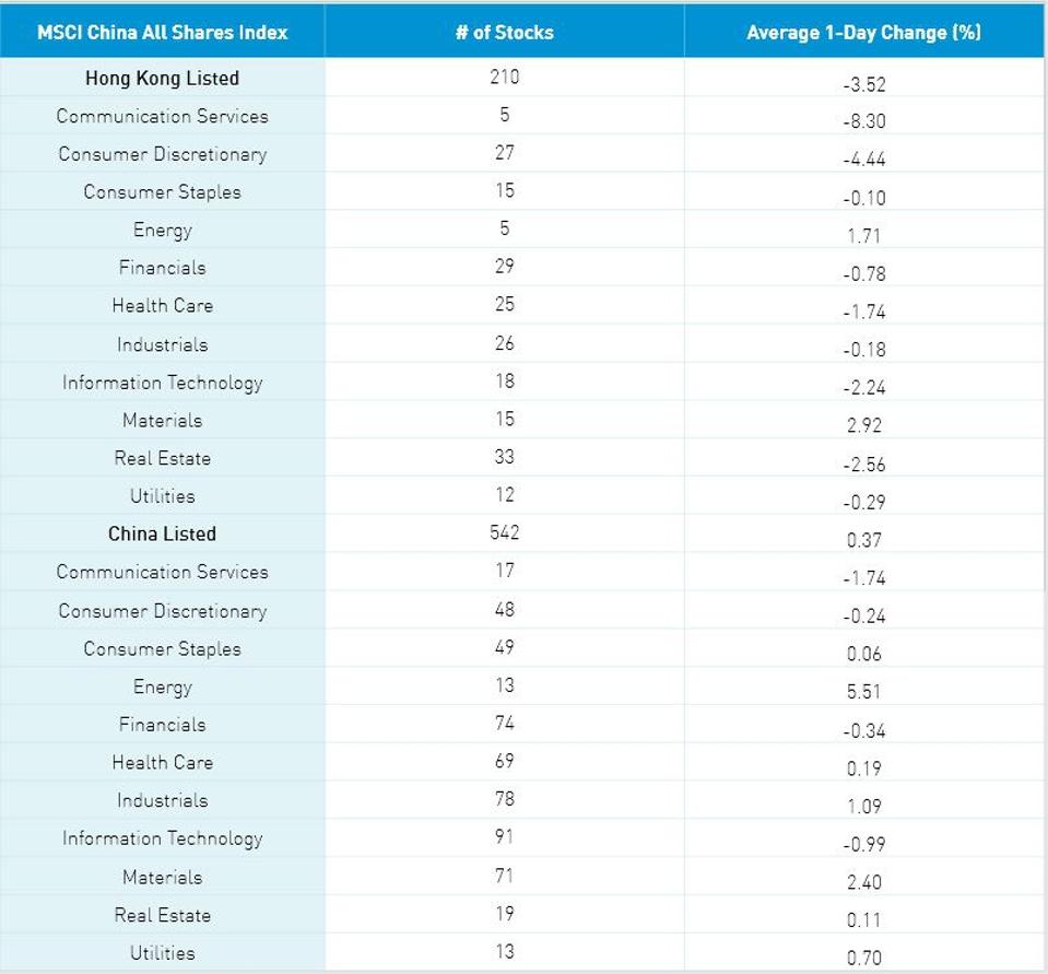 Shanghai, Shenzhen, and STAR Board diverged +0.49%, James Bond +0.07%, and -0.75% on turnover -2.4% from yesterday which is 152% of the 1-year average. The 542 Mainland stocks within the MSCI China All Shares gained +0.4% led by energy +5.53%, materials +2.42%, industrials +1.12% and utilities +0.2% while communication -1.72%, tech -0.97%, and financials -0.32%. The Mainland’s most heavily traded by value were China Northern Rare Earth +6.15%, Longi Green Energy -2.23%, Zijin Mining Group +5.35%, Tianqi Lithium +2.61%, GoerTek -89%, Inner Mongolia Baotou Steel +2.1%, broker East Money -0.09%, TBEA -1.23%, Tibet Mineral Development +0.95% and Power Construction +0.23%. Northbound Stock Connect volumes were moderate/high as foreign investors bought +$405mm of Mainland stocks as Northbound trading accounted for 4.7% of Mainland turnover.