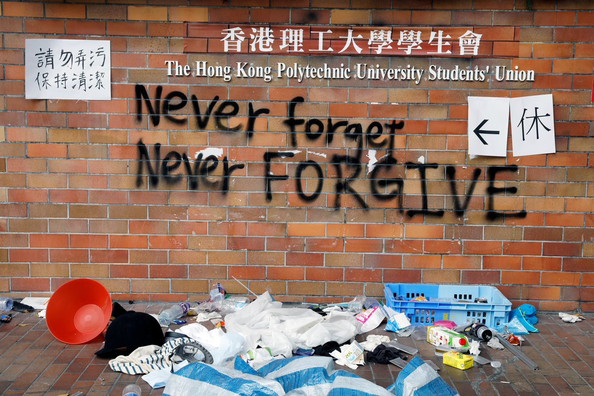 The Polytechnic University campus was the last of five that protesters had occupied to use as bases from which to disrupt the city, blocking the nearby Cross-Harbour Tunnel linking Kowloon to Hong Kong Island and other arteries.