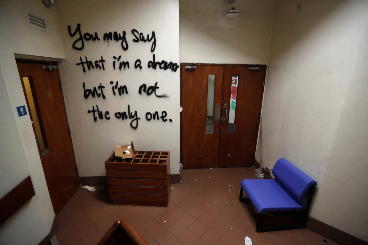 The university on Kowloon peninsula was turned into a battleground in mid-November, when protesters barricaded themselves in and clashed with riot police in a hail of petrol bombs, water cannon and tear gas. About 1,100 people were arrested last week, some while trying to escape.