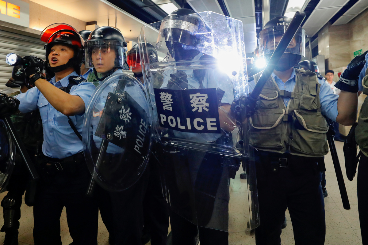 Outside, large crowds of black-clad protesters chanted: "Hong Kong people, add oil," a slogan meaning "keep your strength up", while encircling the sports stadium and blocking exits.