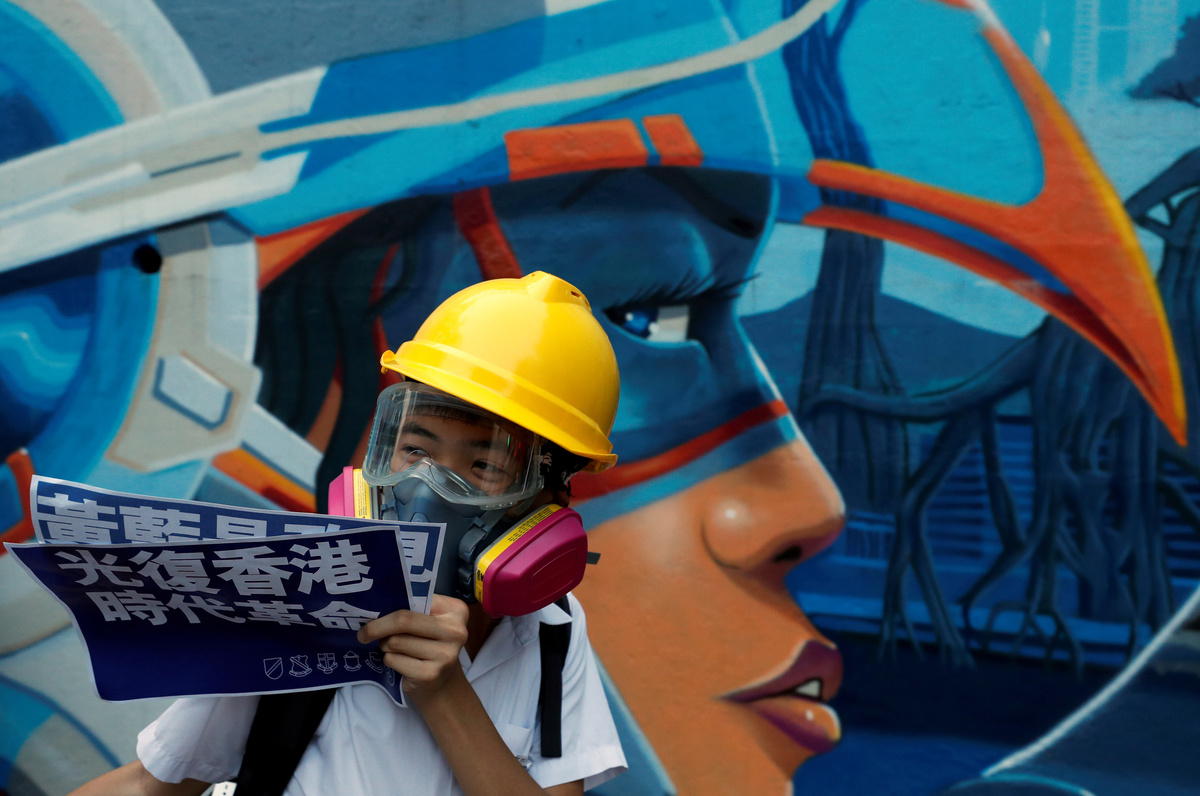 Anti-government protesters wear masks outside the venue of the first community dialogue held by Hong Kong Chief Executive Carrie Lam in Hong Kong, China September 26, 2019. REUTERS/Athit Perawongmetha