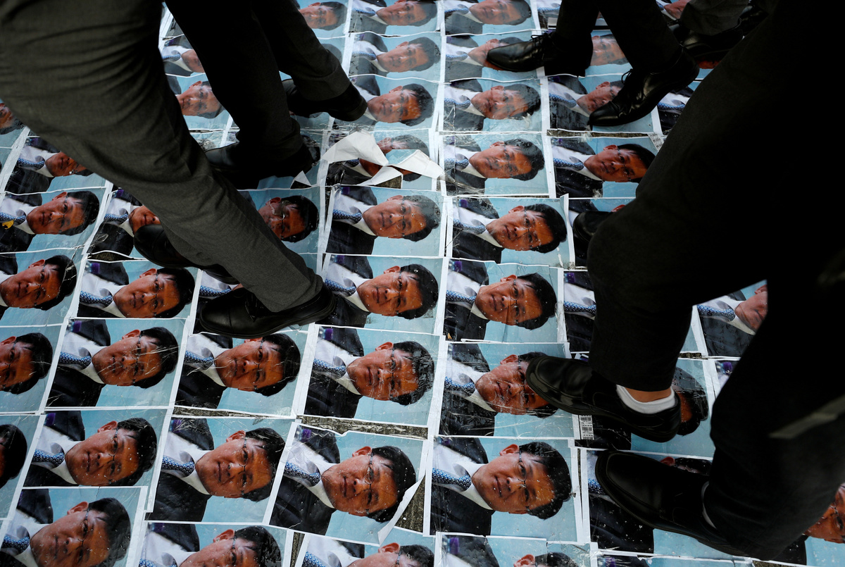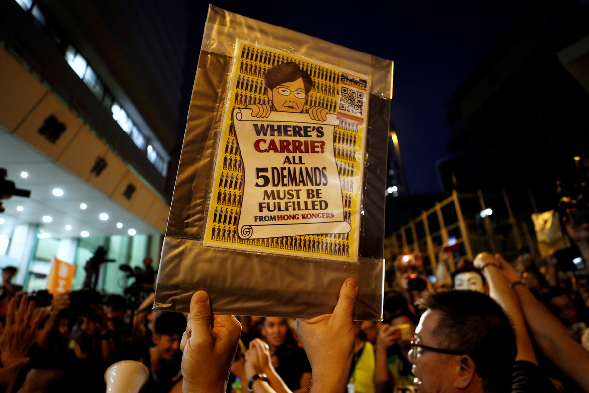 Hong Kong Chief Executive Carrie Lam attends the first community dialogue session in Hong Kong, China September 26, 2019. REUTERS/Tyrone SiuAnti-government protesters step on pictures of pro-China lawmaker Junius Ho outside the venue of first community dialogue held by Hong Kong Chief Executive Carrie Lam in Hong Kong, China September 26, 2019. REUTERS/Jorge SilvaAn anti-government protester's smartphone screen is pictured outside the venues of first community dialogue holding by Hong Kong Chief Executive Carrie Lam in Hong Kong, China September 26, 2019. REUTERS/Jorge SilvaHong Kong Chief Executive Carrie Lam attends the first community dialogue session in Hong Kong, China September 26, 2019. REUTERS/Tyrone SiuHong Kong Chief Executive Carrie Lam attends the first community dialogue session in Hong Kong, China September 26, 2019. REUTERS/Tyrone SiuAn anti-government protester holds placards in front of a mural outside the venues of first community dialogue holding by Hong Kong Chief Executive Carrie Lam in Hong Kong, China September 26, 2019. REUTERS/Jorge SilvaA protester is escorted by undercover police officers after he tried to stop Hong Kong Chief Executive Carrie Lam's motorcade in Hong Kong, China September 26, 2019. REUTERS/Athit PerawongmethaAnti-government protesters hold up placards outside the venues of first community dialogue holding by Hong Kong Chief Executive Carrie Lam in Hong Kong, China September 26, 2019. REUTERS/Jorge SilvaAnti-government protesters hold up a placard outside the venues of first community dialogue holding by Hong Kong Chief Executive Carrie Lam in Hong Kong, China September 26, 2019. REUTERS/Jorge SilvaAnti-government protesters raise their hands outside the venues of first community dialogue holding by Hong Kong Chief Executive Carrie Lam in Hong Kong, China September 26, 2019. REUTERS/Jorge SilvaHong Kong Chief Executive Carrie Lam attends the first community dialogue session in Hong Kong, China September 26, 2019. REUTERS/Tyrone SiuFILE PHOTO: Hong Kong's Chief Executive Carrie Lam attends a news conference in Hong Kong, China September 24, 2019. REUTERS/Jorge SilvaAnti-government protesters form a human chain in front of a mural outside the venues of first community dialogue holding by Hong Kong Chief Executive Carrie Lam in Hong Kong, China September 26, 2019. REUTERS/Jorge SilvaAnti-government protesters hold placards as they form a human chain in front of a mural outside the venues of first community dialogue holding by Hong Kong Chief Executive Carrie Lam in Hong Kong, China September 26, 2019. REUTERS/Jorge SilvaAnti-government protesters run away from riot police as they gather at Sha Tin Mass Transit Railway (MTR) station to demonstrate against the railway operator, which they accuse of helping the government, in Hong Kong, China September 25, 2019. REUTERS/Tyrone SiuRiot police disperse anti-government protesters as they gather at Sha Tin Mass Transit Railway (MTR) station to demonstrate against the railway operator, which they accuse of helping the government, in Hong Kong, China September 25, 2019. REUTERS/Tyrone SiuA woman holds a flower as she stands in front of the makeshift memorial outside Mong Kok police station, Hong Kong, China September 25, 2019. REUTERS/Jorge SilvaKeyboards and microphone are seen on the floor next to customer service center at Sha Tin Mass Transit Railway (MTR) station after protesters demonstrated against the railway operator, which they accuse of helping the government, in Hong Kong, China September 25, 2019. REUTERS/Tyrone Siu