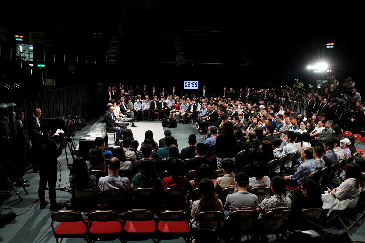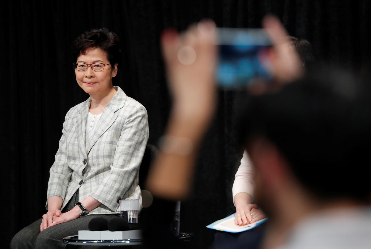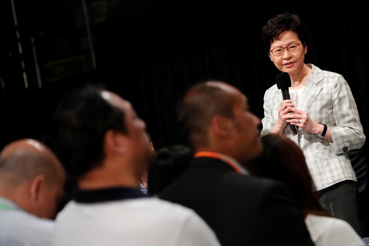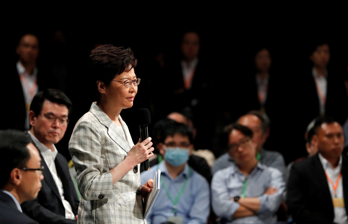 Hong Kong Chief Executive Carrie Lam attends the first community dialogue session in Hong Kong, China September 26, 2019. REUTERS/Tyrone Siu