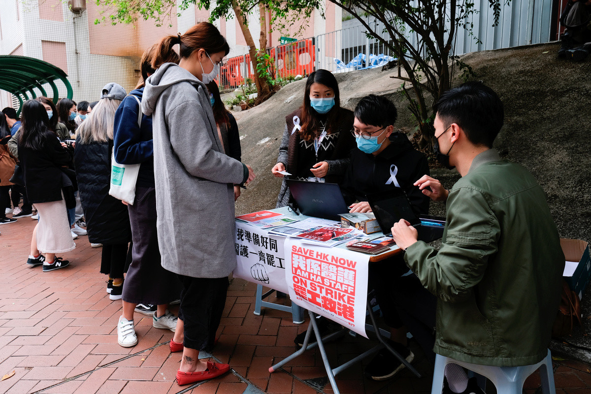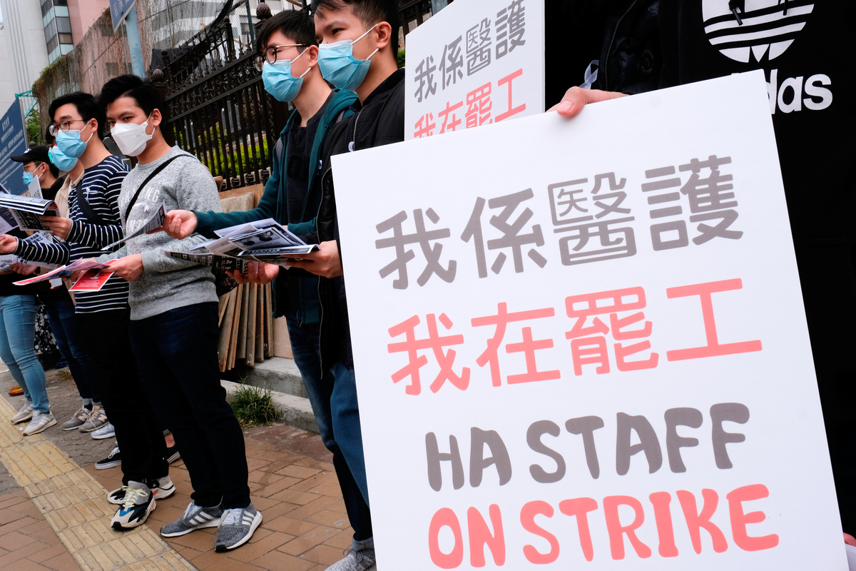 The HAEA's five demands are for the government to close the border, distribute masks to the public, ensure that front-line medical workers have adequate supplies and protection, provide enough isolation wards for patients and guarantee no reprisals for strikers.