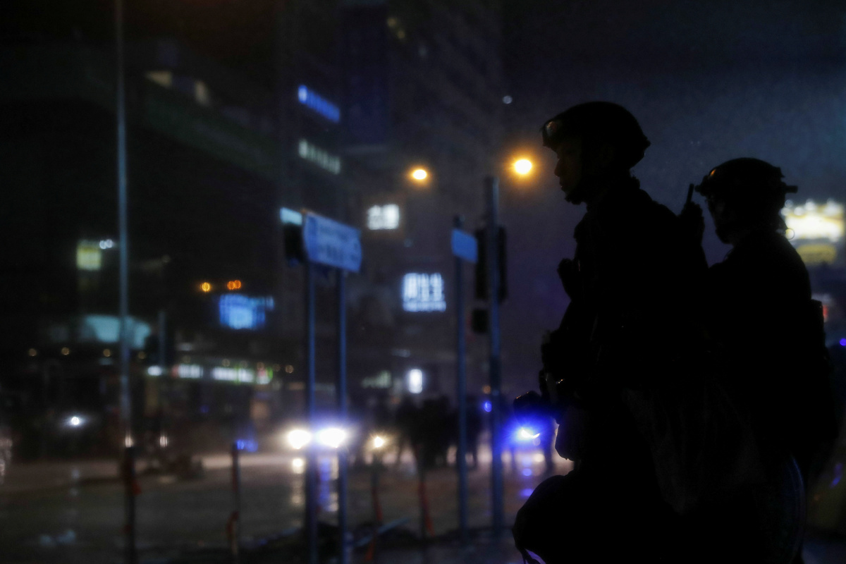 One officer shouted through a loudhailer in broken Cantonese - the main language of Hong Kong - "Bear consequences for your actions."