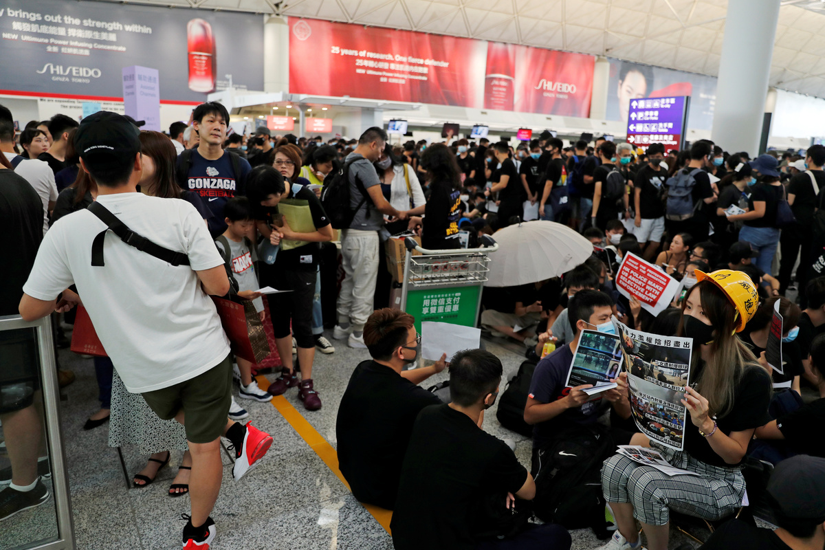 Hong Kong is the world's busiest air cargo port and the 8th busiest by passenger traffic, handling 73 million passengers a year. The airport has been filled with anti-government protesters for four days.