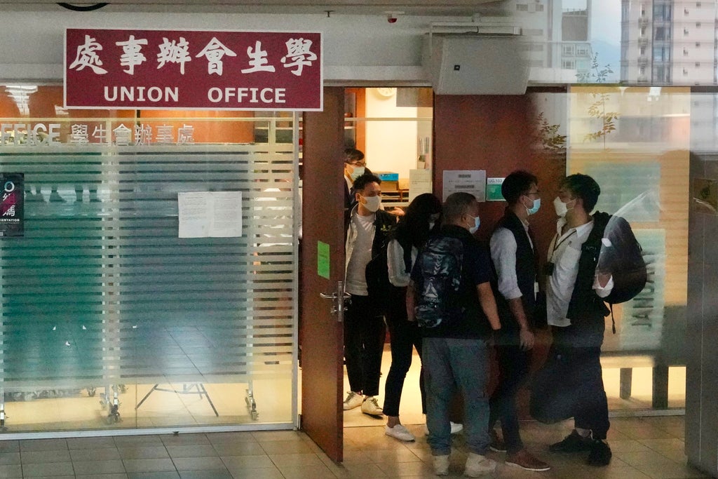 Hong Kong’s national security police on Friday raided the office of a university student union after student leaders last week commemorated a man who killed himself after stabbing a police officer.