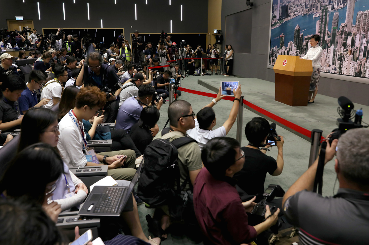 "After repeated internal deliberations over the last two days, I now announce that the government has decided to suspend the legislative amendment exercise, restart our communication with all sectors of society, do more explanation work and listen to different views of society," Lam told a news conference.