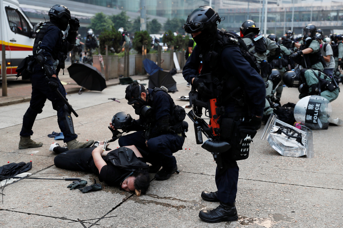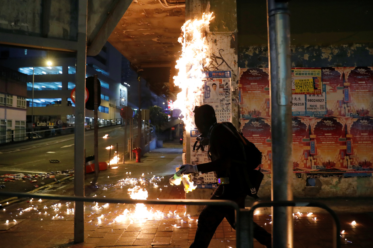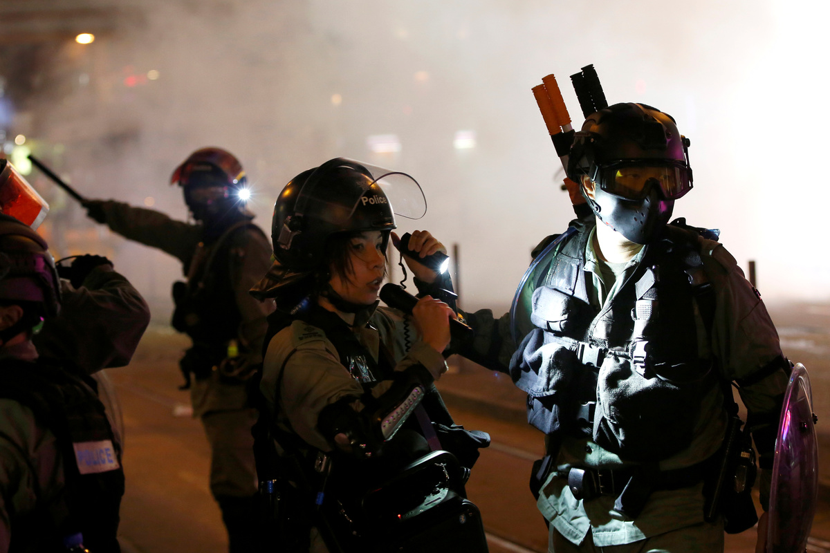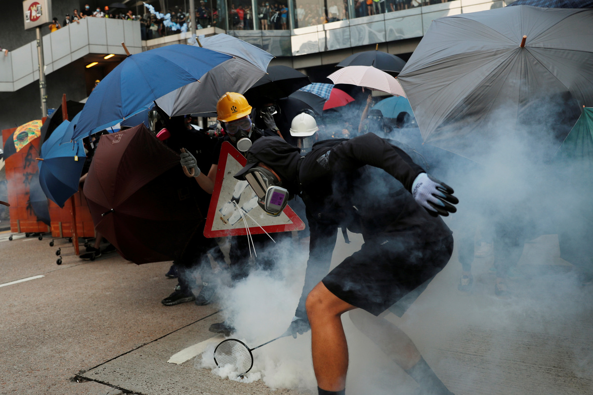 HONG KONG (Reuters) - Hong Kong's metro stations and roads re-opened on Monday, after a chaotic weekend that saw police fire water cannon, tear gas and rubber bullets at protesters who set fires and threw petrol bombs outside government offices and across central districts.