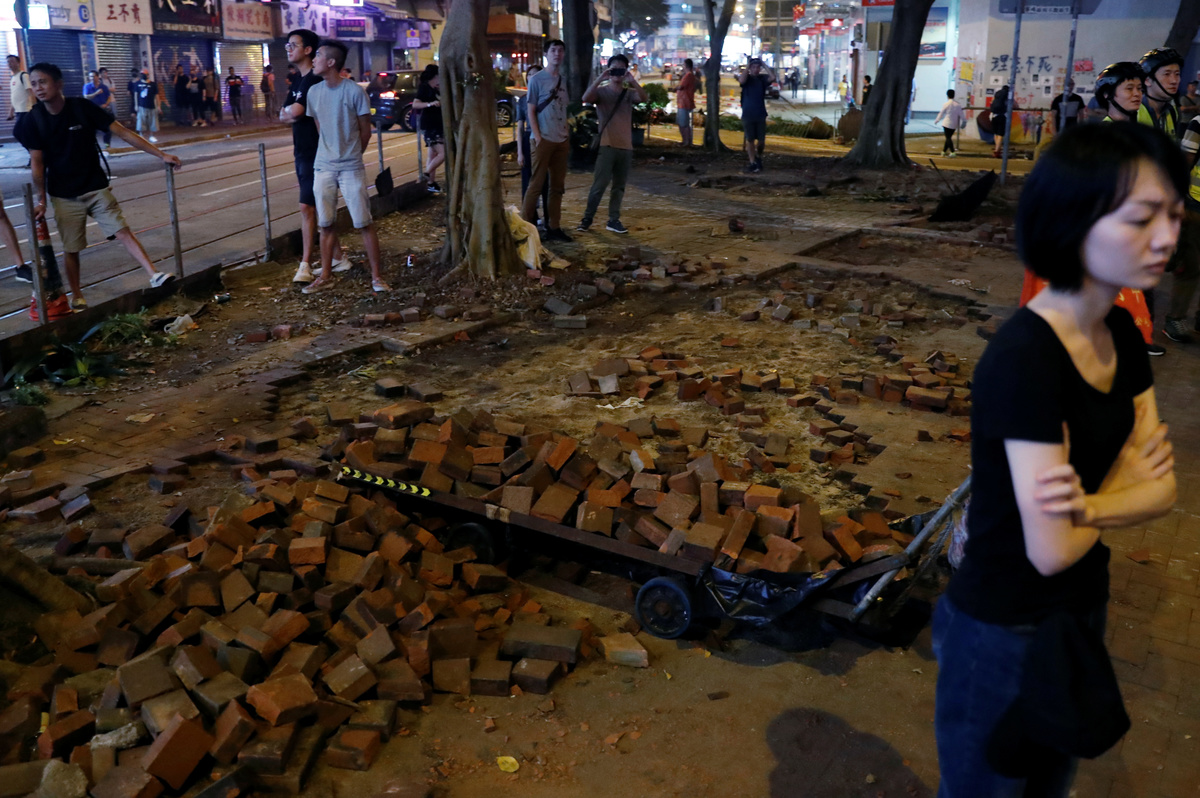 Residents of the former British colony awoke to roads, shop fronts and buildings across the financial centre daubed in graffiti, windows in government buildings smashed and parts of pavements uprooted by protesters.