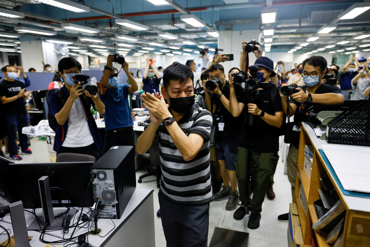 The popular tabloid of staunch Beijing critic Lai folded after several hundred police raided its headquarters on June 17 and froze key assets and bank accounts. It printed its last edition on June 24.