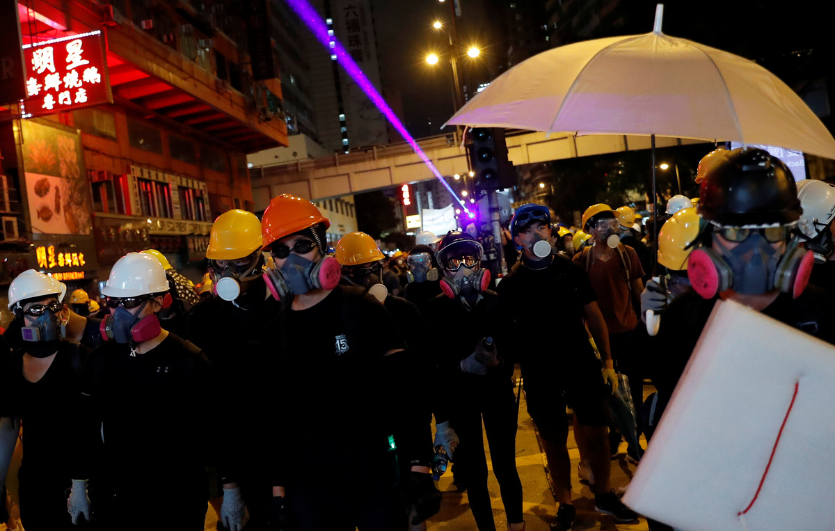 HONG KONG (Reuters) - Hong Kong's government said violence and illegal protests were pushing the city to an "extremely dangerous edge", as police fired multiple rounds of tear gas to disperse hundreds of anti-government protesters on Sunday and Beijing said it would not let the situation persist.
