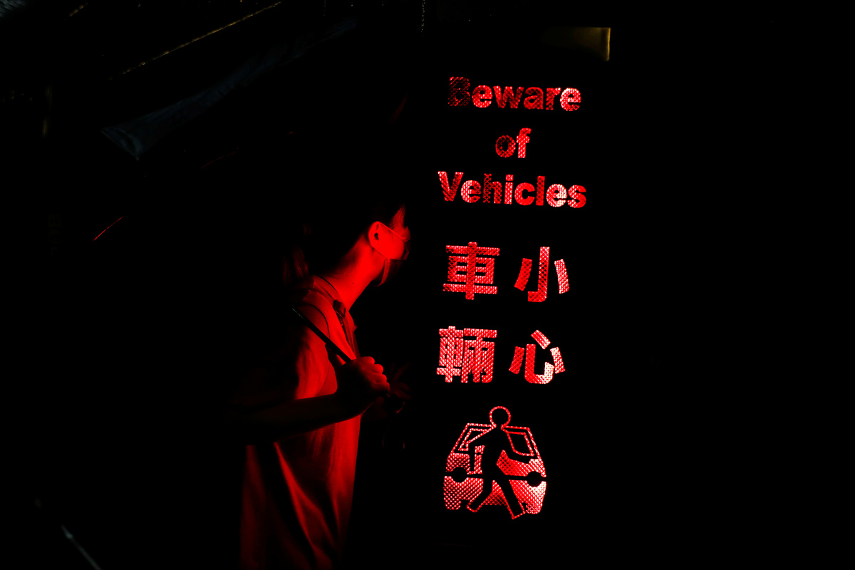 Late on Sunday, hundreds of masked protesters blocked major roads, spray painted traffic lights, started fires and prevented transport from entering the Cross-Harbour Tunnel linking Hong Kong island and the Kowloon peninsula.