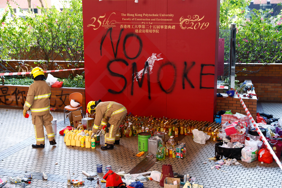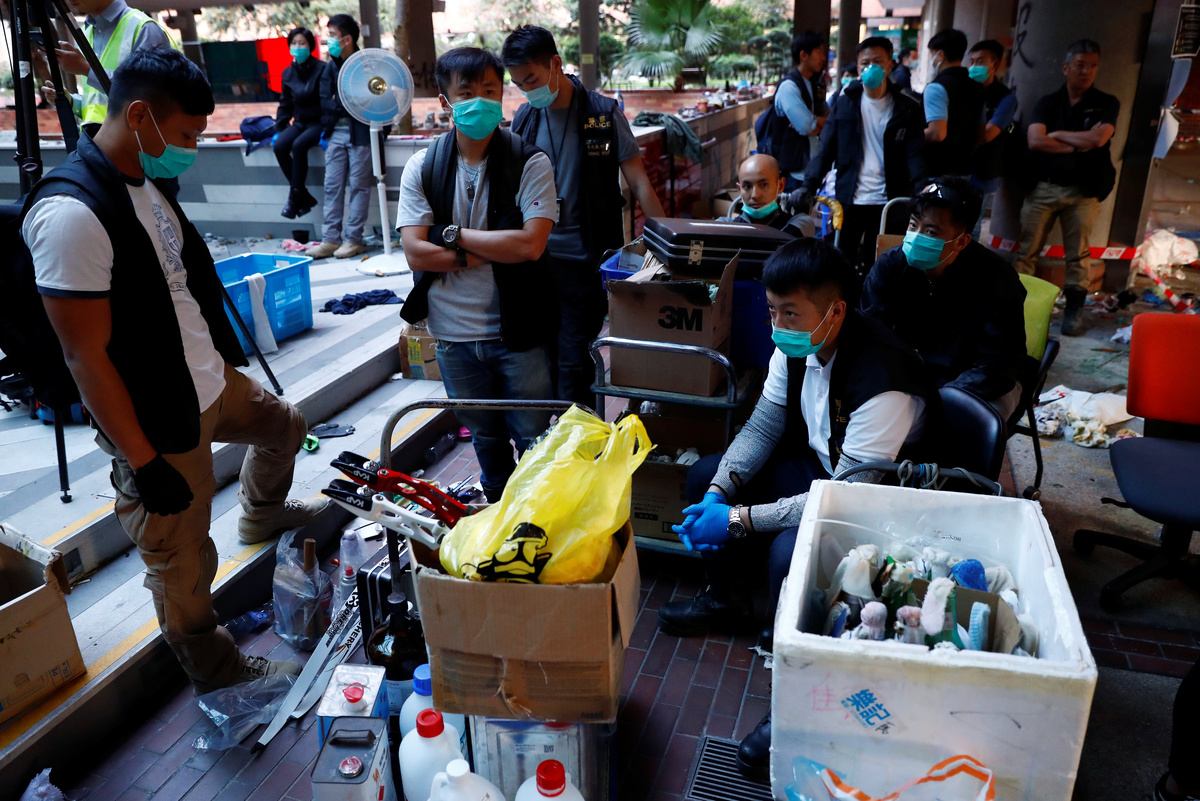 HONG KONG (Reuters) - Hong Kong police on Friday withdrew from a university campus trashed by weeks of clashes as pro-democracy activists canvassed social media to promote more protests at the weekend.