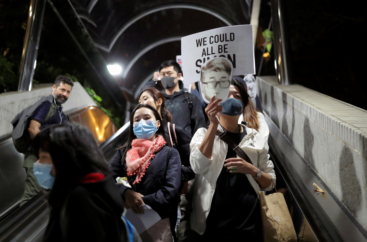 They chanted "We are all Simon", referring to a former consulate employee, Simon Cheng, who said Chinese secret police beat him and deprived him of sleep seeking information about activists behind the protests.