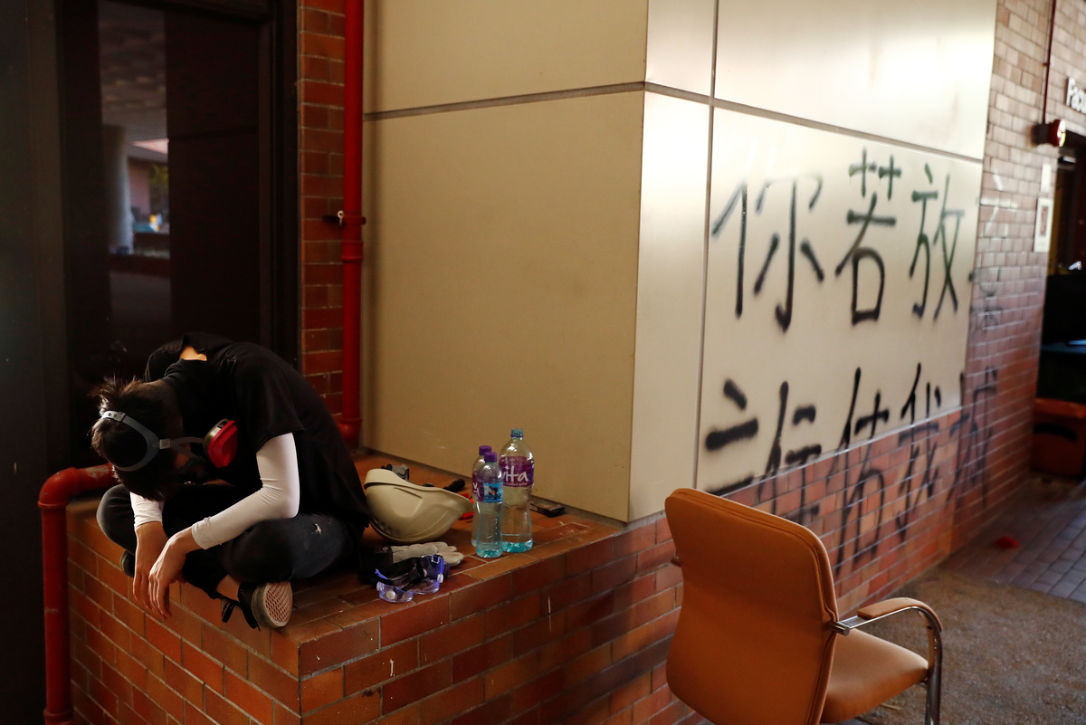 The campus is the last of five universities to be occupied by activists, who have used the site as a base to block the Cross Harbour tunnel, which connects Kowloon to Hong Kong island.