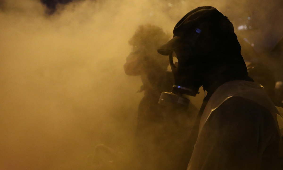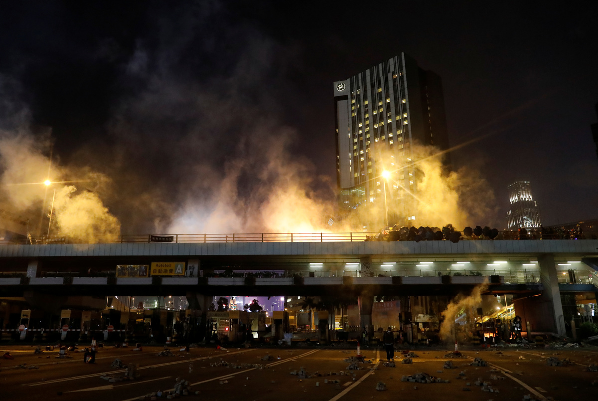 Police fired tear gas to try to break up protests on Nathan Road, a major thoroughfare in Kowloon's Mong Kok district, which was strewn with loose bricks, and in Yau Ma Tei district, where successive volleys of gas canisters temporarily cleared the streets. Clashes intensified during the night.