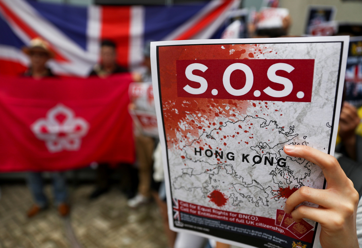 "Sino-British Joint Declaration is VOID," one placard read in the protest outside the British Consulate.