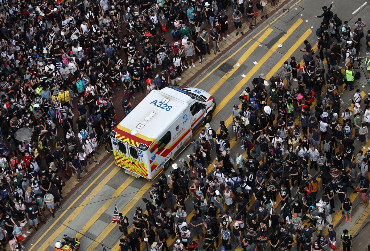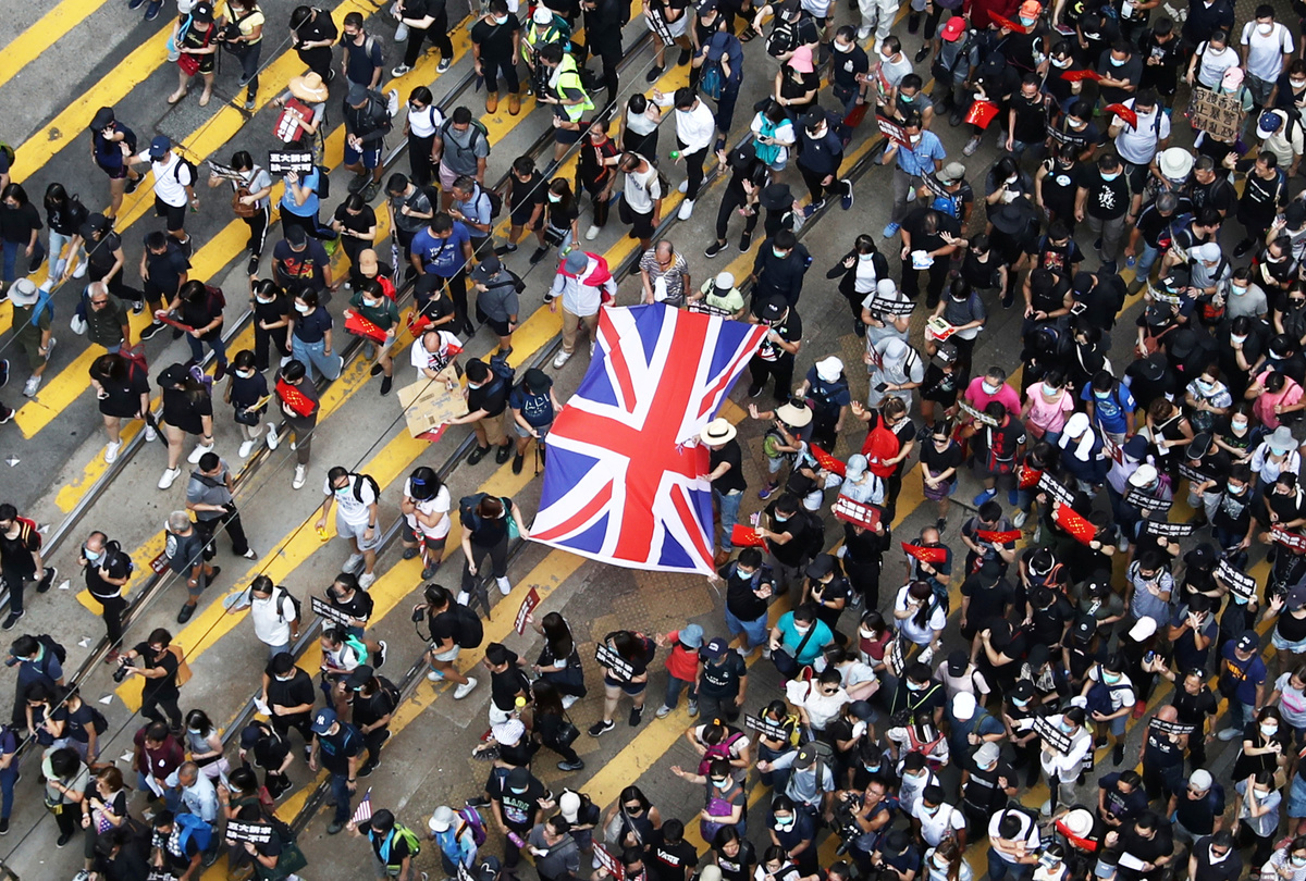Earlier on Sunday, protesters gathered peacefully outside the British Consulate, calling on Britain to rein in China and ensure it respects the city's freedoms.