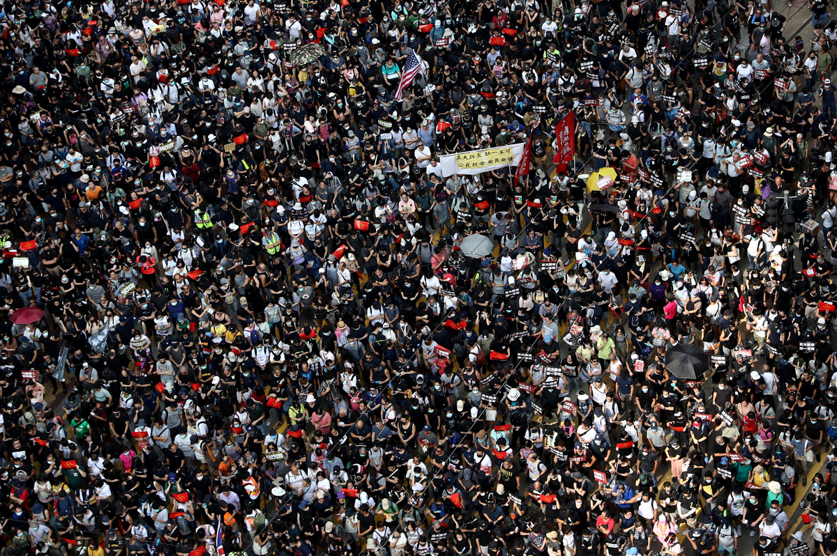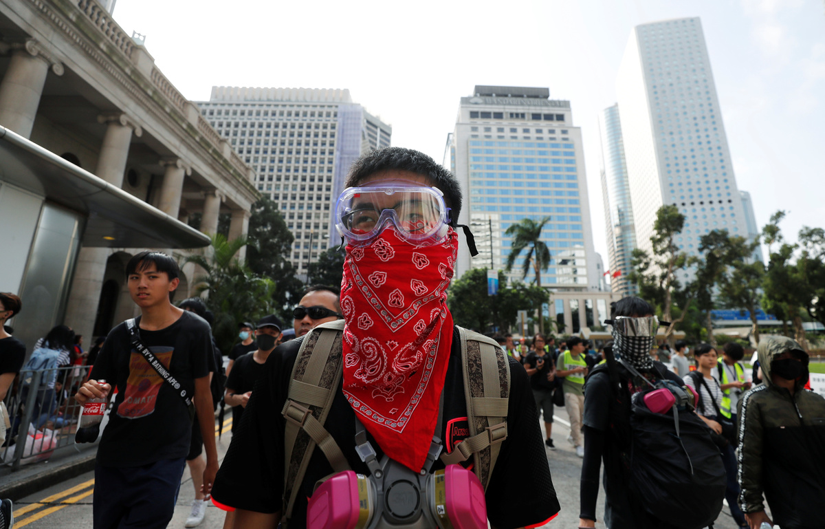 Thousands of protesters, many clad in black masks, caps and shades to obscure their identity, raced through the streets of the financial hub in cat-and-mouse tactics with police, setting street fires and blocking roads in the heart of the city.