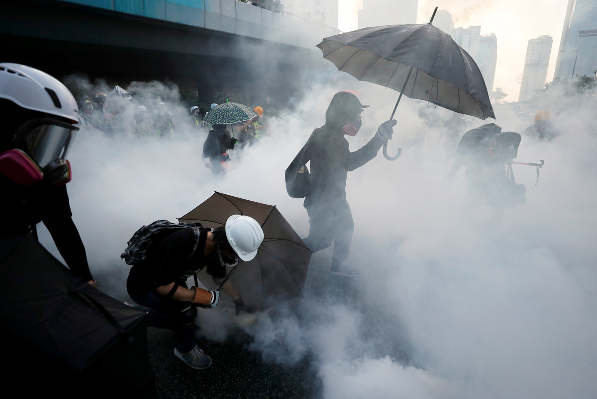 Authorities moved quickly to douse the fires and police fired volleys of tear gas to disperse protesters, including in the bustling shopping and tourist district of Causeway Bay.
