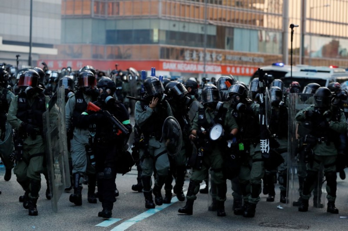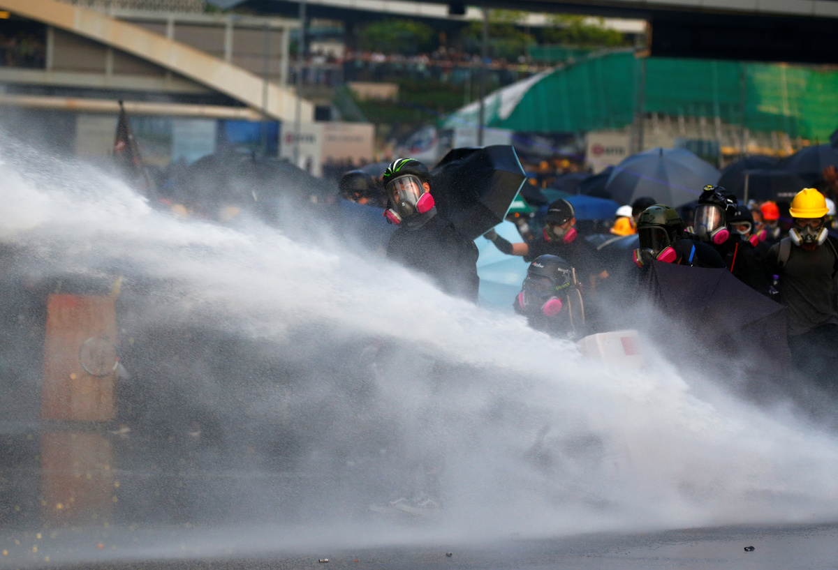 HONG KONG (Reuters) - Hong Kong police fired water cannon and volleys of tear gas to disperse protesters throwing petrol bombs at government buildings on Sunday, as months of sometimes violent demonstrations showed no sign of letting up.