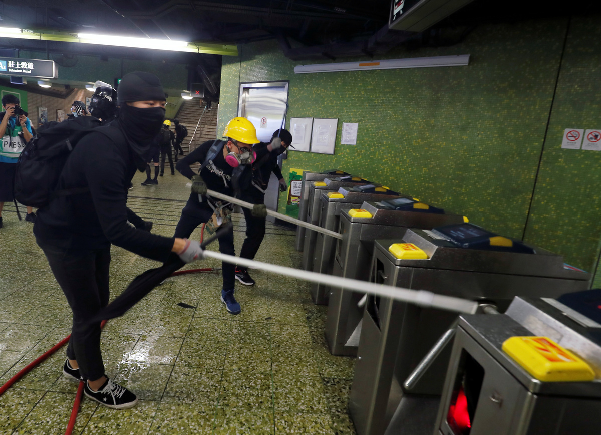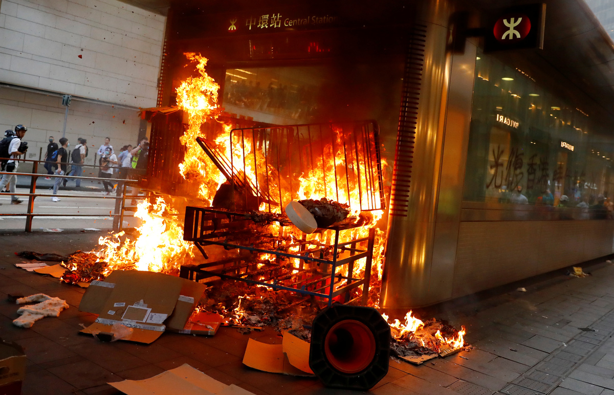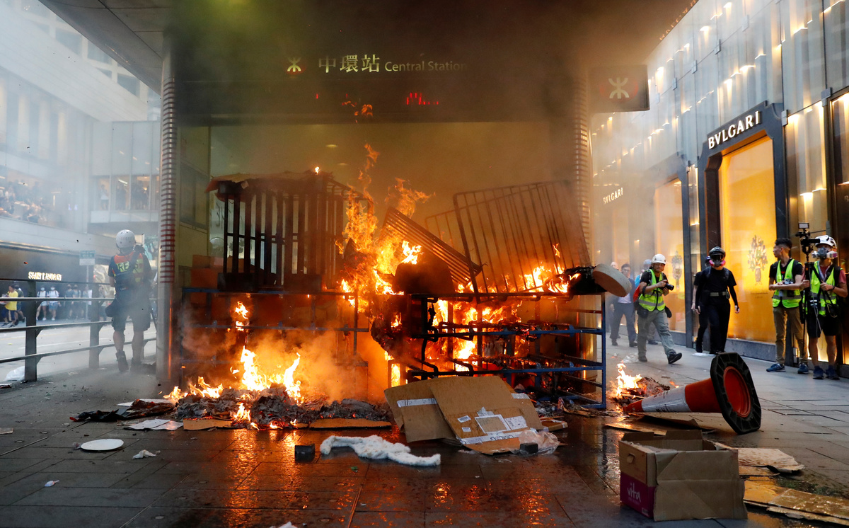 Activists set barricades, smashed windows, started street fires and vandalised the MTR metro station in Central, the smartest district of the former British colony.