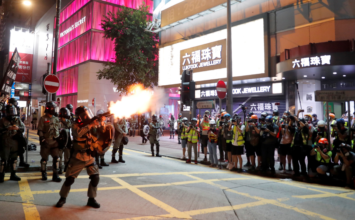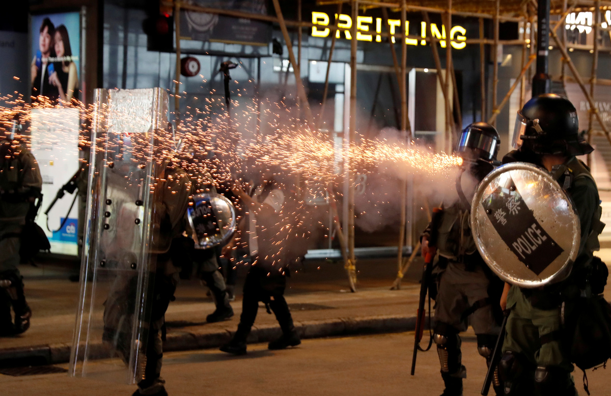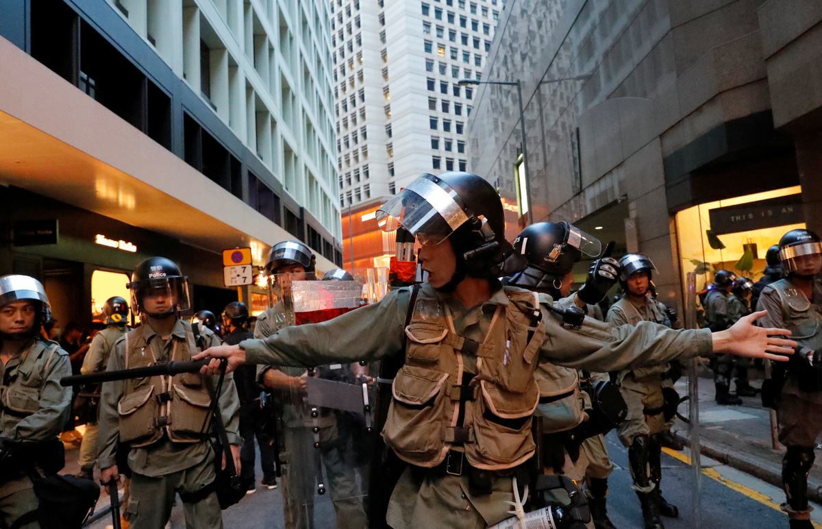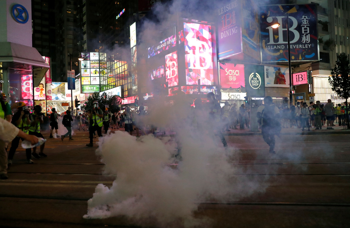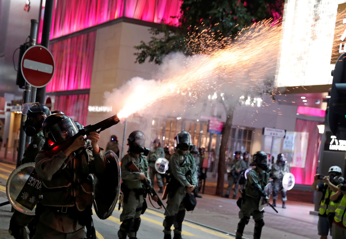 Esper made his call in Paris as police in Hong Kong prevented protesters from blocking access to the airport but fired tear gas for a second night running in the densely populated district of Mong Kok.
