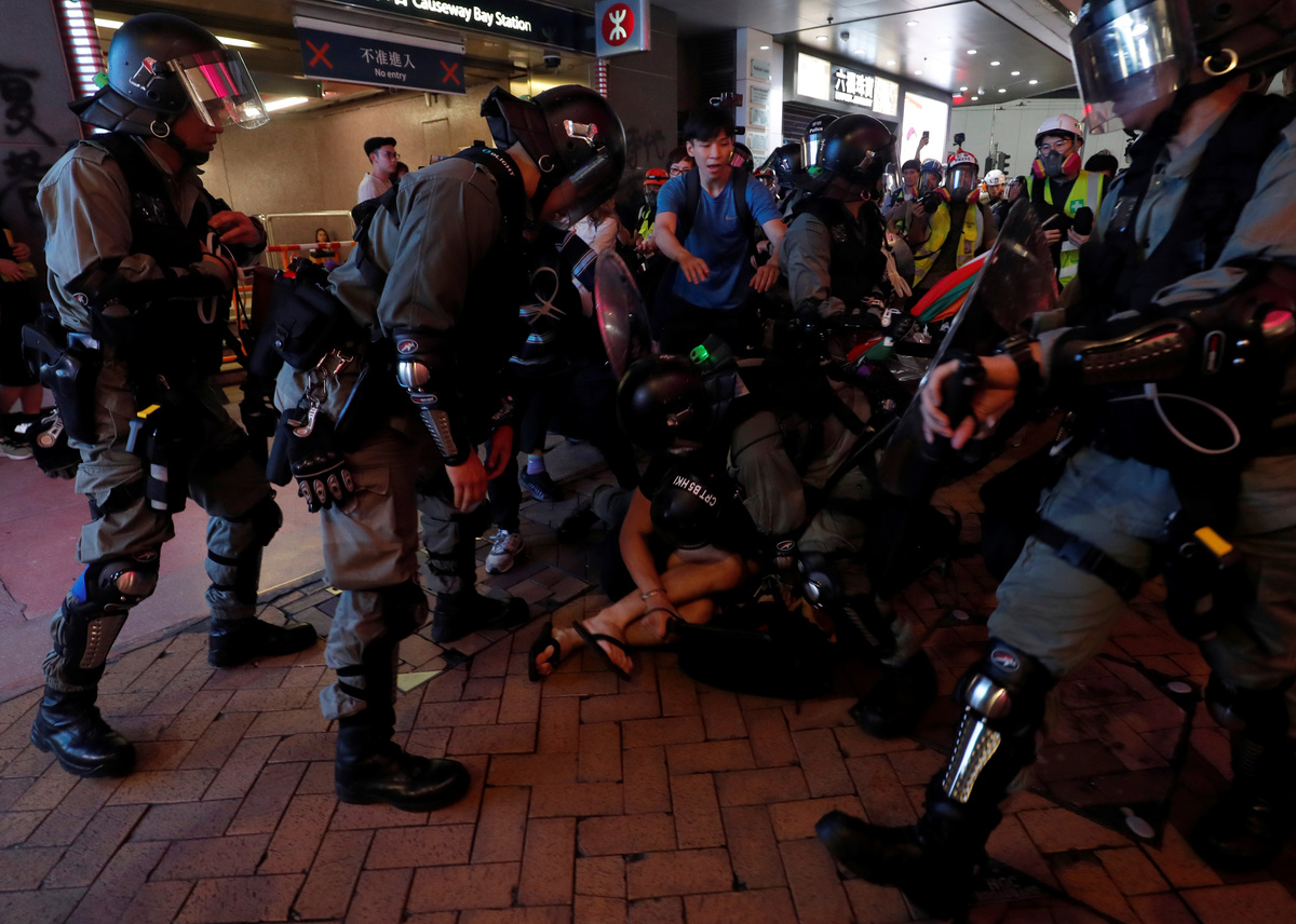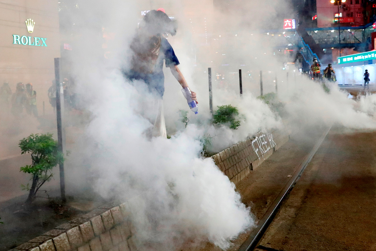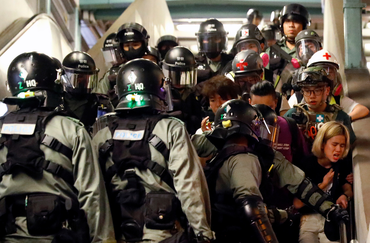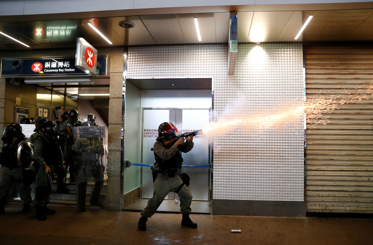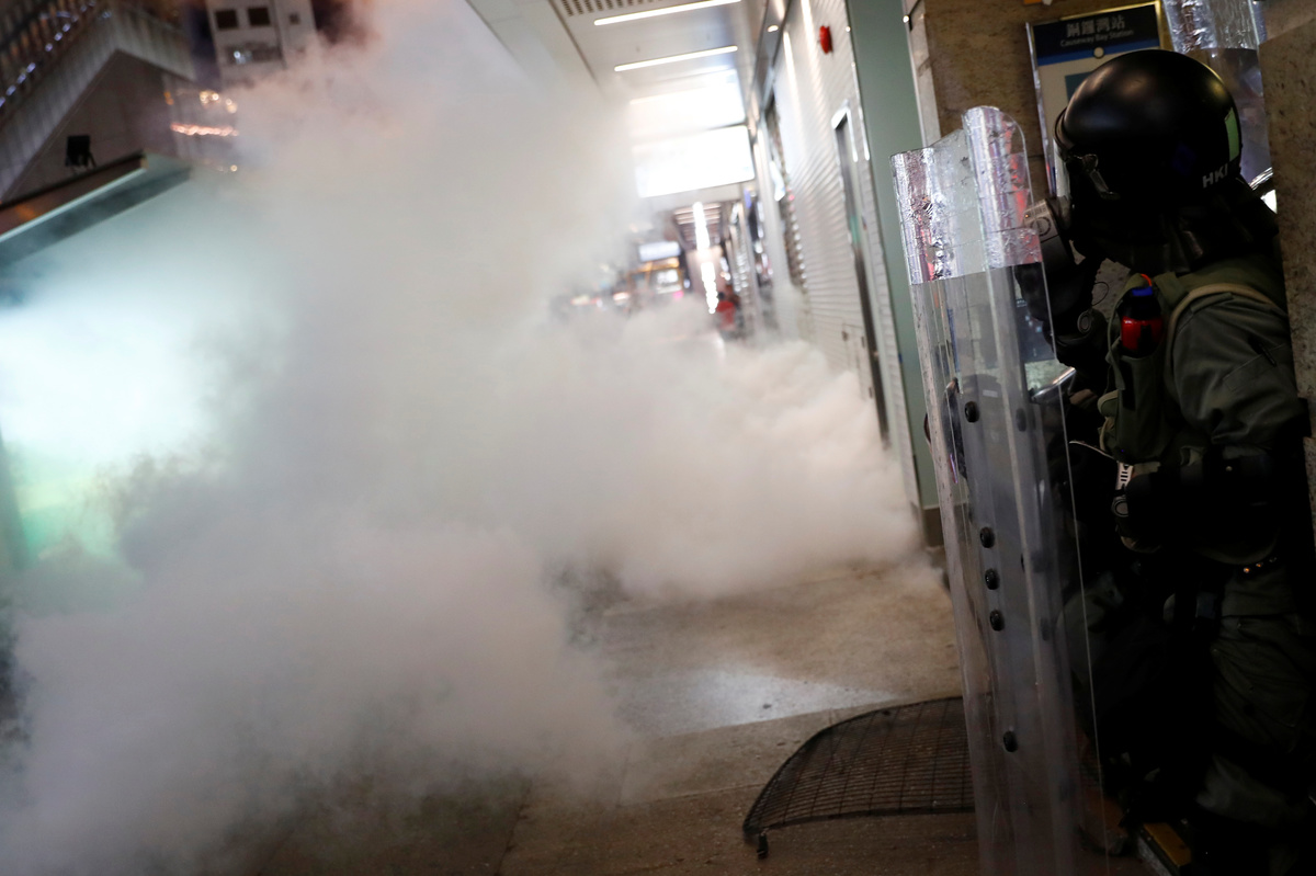 Esper made his call in Paris as police in Hong Kong prevented protesters from blocking access to the airport but fired tear gas for a second night running in the densely populated district of Mong Kok.