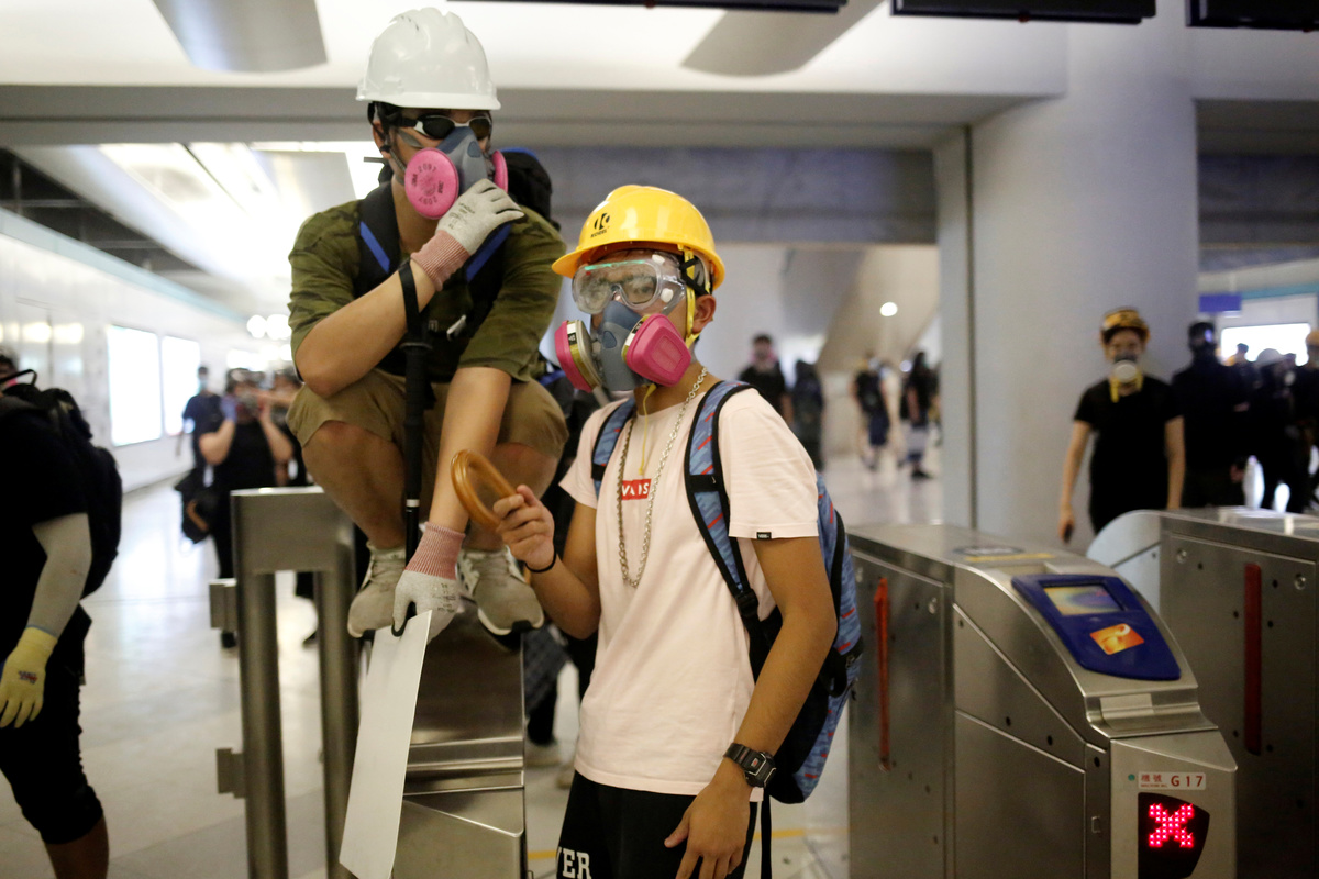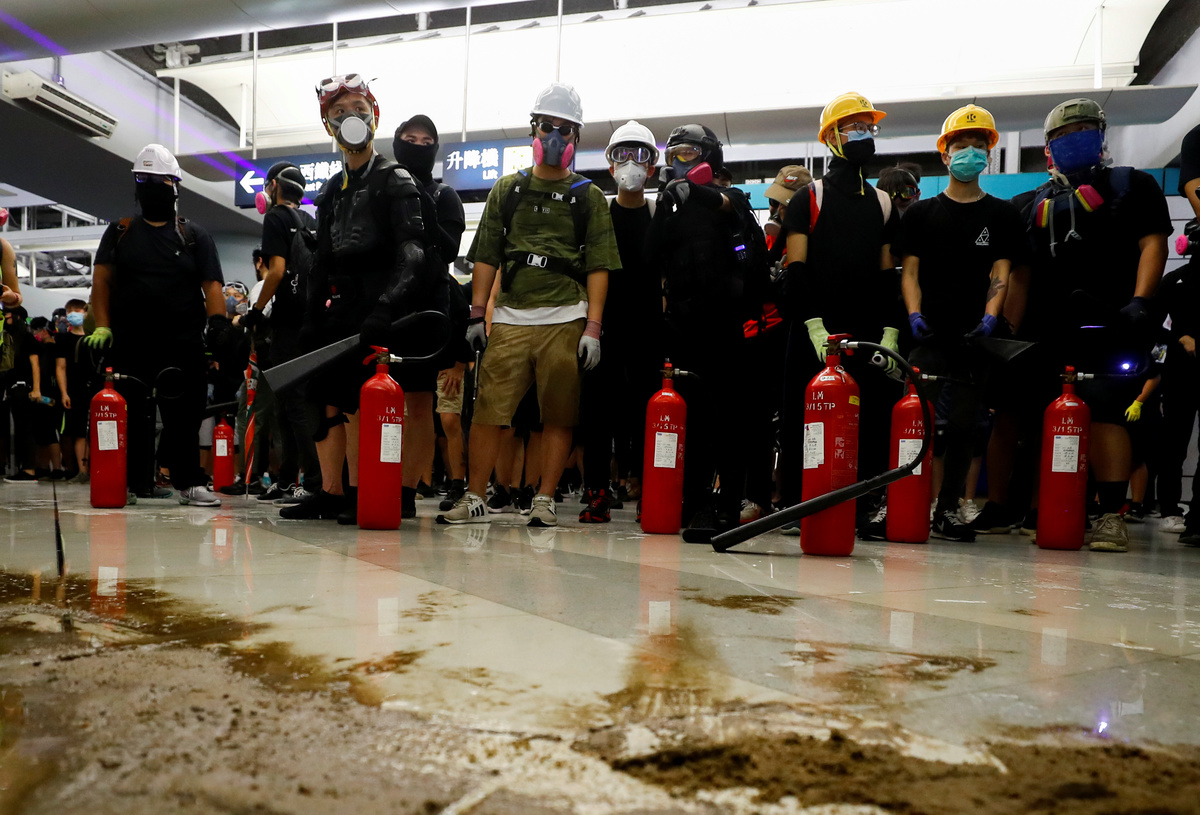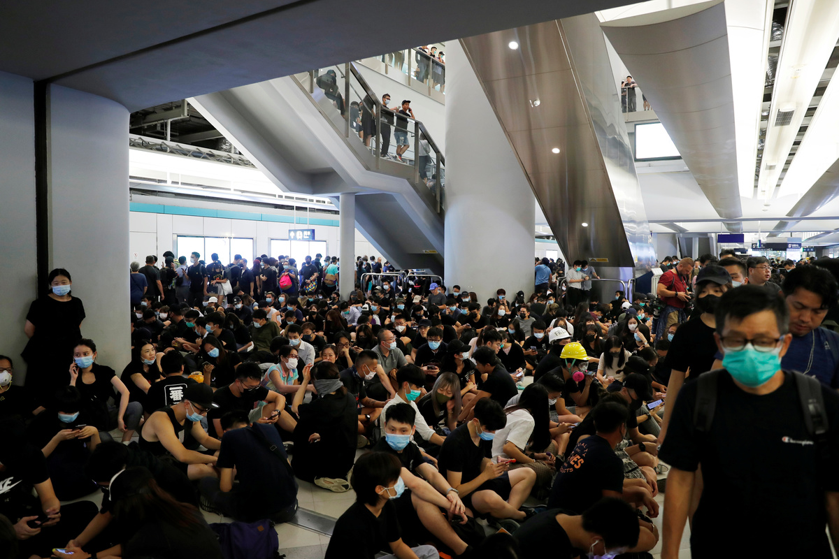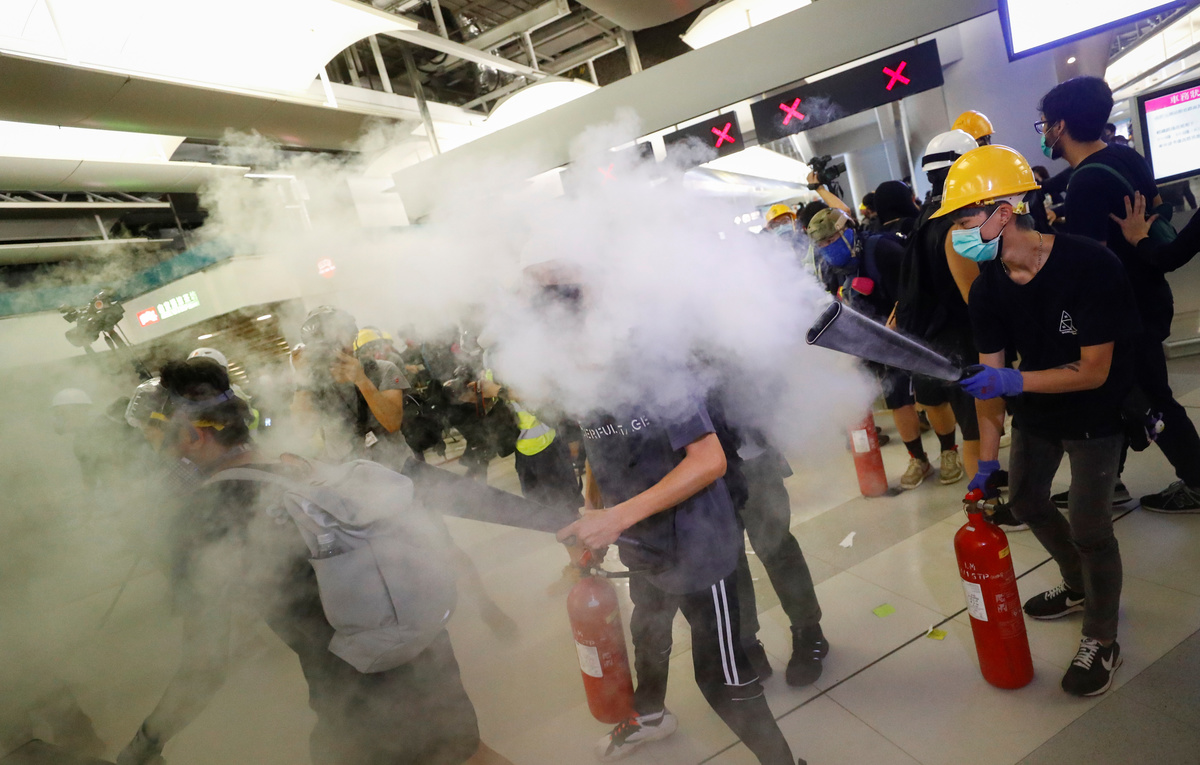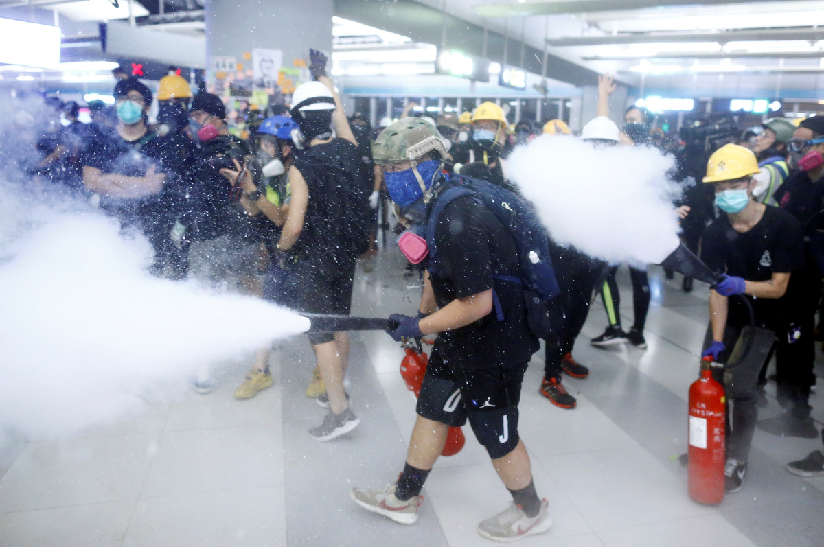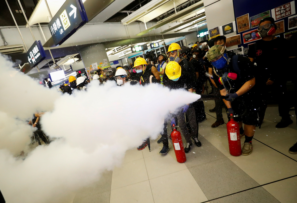 Protesters call people to join further rallies against the government at Kowloon Tong subway station in Hong Kong, China, August 21, 2019. REUTERS/Ann WangProtesters face riot police during a stand off at Yuen Long MTR station, the scene of an attack by suspected triad gang members a month ago, in Yuen Long, New Territories, Hong Kong, China August 21, 2019. REUTERS/Kai PfaffenbachProtesters face riot police inside the Yuen Long MTR station, the scene of an attack by suspected triad gang members a month ago, in Yuen Long, New Territories, Hong Kong, China August 21, 2019. REUTERS/Willy KurniawanProtesters fire nitrogen extinguishers during a stand off at Yuen Long MTR station, the scene of an attack by suspected triad gang members a month ago, in Yuen Long, New Territories, Hong Kong, China August 21, 2019. REUTERS/Thomas PeterProtesters fire nitrogen extinguishers during a stand off at Yuen Long MTR station, the scene of an attack by suspected triad gang members a month ago, in Yuen Long, New Territories, Hong Kong, China August 21, 2019. REUTERS/Thomas PeterA protester fires a nitrogen extinguisher during a stand off at Yuen Long MTR station, the scene of an attack by suspected triad gang members a month ago, in Yuen Long, New Territories, Hong Kong, China August 21, 2019. REUTERS/Thomas PeterProtesters fire nitrogen extinguishers toward riot police during a stand off at Yuen Long MTR station, the scene of an attack by suspected triad gang members a month ago, in Yuen Long, New Territories, Hong Kong, China August 21, 2019. REUTERS/Kai PfaffenbachProtesters face riot police during a stand off at Yuen Long MTR station, the scene of an attack by suspected triad gang members a month ago, in Yuen Long, New Territories, Hong Kong, China August 21, 2019. REUTERS/Kai PfaffenbachProtesters face riot police inside the Yuen Long MTR station, the scene of an attack by suspected triad gang members a month ago, in Yuen Long, New Territories, Hong Kong, China August 21, 2019. REUTERS/Tyrone SiuProtesters fire nitrogen extinguishers toward riot police during a stand off at Yuen Long MTR station, the scene of an attack by suspected triad gang members a month ago, in Yuen Long, New Territories, Hong Kong, China August 21, 2019. REUTERS/Kai PfaffenbachPeople protest during a silent sit-in gathering at Yuen Long MTR station, the scene of an attack by suspected triad gang members a month ago, in Yuen Long, New Territories, Hong Kong, China August 21, 2019. REUTERS/Tyrone SiuProtesters fire nitrogen extinguishers toward riot police during a stand off at Yuen Long MTR station, the scene of an attack by suspected triad gang members a month ago, in Yuen Long, New Territories, Hong Kong, China August 21, 2019. REUTERS/Kai PfaffenbachA person walks past police members who are patrolling during a silent sit-in gathering at Yuen Long MTR station, the scene of an attack by suspected triad gang members a month ago, in Yuen Long, New Territories, Hong Kong, China August 21, 2019. REUTERS/Kai PfaffenbachPolice members patrol as people protest during a silent sit-in gathering outside Yuen Long MTR station, the scene of an attack by suspected triad gang members a month ago, in Yuen Long, New Territories, Hong Kong, China August 21, 2019. REUTERS/Tyrone Siu ?People protest during a silent sit-in gathering at Yuen Long MTR station, the scene of an attack by suspected triad gang members a month ago, in Yuen Long, New Territories, Hong Kong, China August 21, 2019. REUTERS/Thomas PeterProtesters gather after firing nitrogen extinguishers towards the riot police during a stand off at Yuen Long MTR station, the scene of an attack by suspected triad gang members a month ago, in Yuen Long, New Territories, Hong Kong, China August 21, 2019. REUTERS/Kai Pfaffenbach