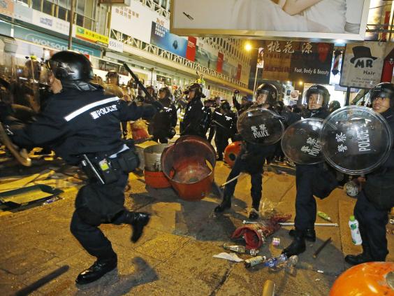 The clashes in December 2014 came when authorities cleared the last of pro-democracy demonstrators from the streets after more than two months of protests that had posed one of the Beijing's greatest political challenges in decades.