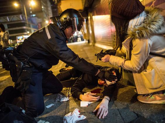 As many as 48 police were injured in the clashes, a police spokeswoman said. Hong Kong television showed police officers being beaten with poles and sticks as they lay on the ground.