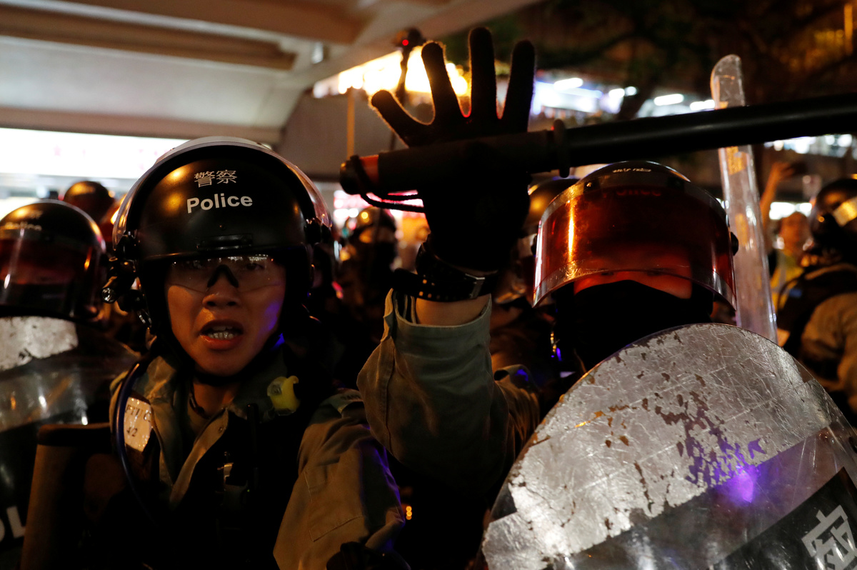 Pro-democracy protesters battled police across the main island on Saturday, furious at Communist Party leaders in Beijing and perceived Chinese meddling with Hong Kong's promised freedoms, which China denies.